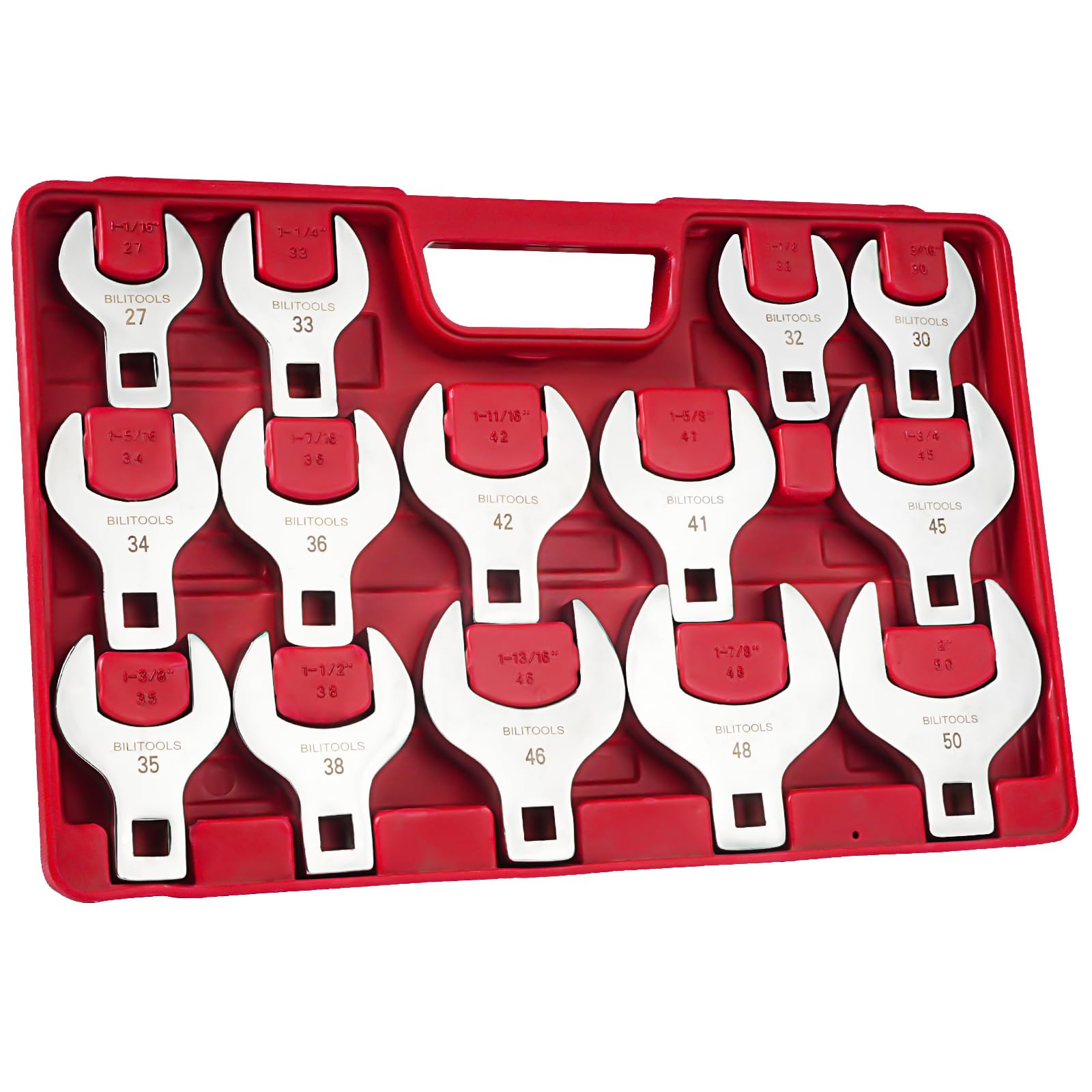 1/2" drive jumbo crowfoot wrench set is designed for reaching fasteners and fittings in hard-to-reach areas or tight spaces.