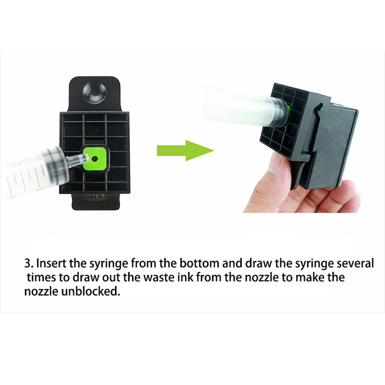 Pull out the syringe needle and ink can be drawn, plug in the needle to add ink