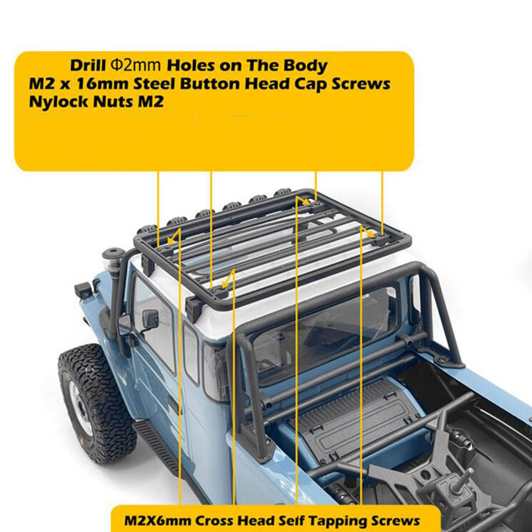 l Need to drill 2mm holes, use M2x16 steel button head cap screws, M2 nuts and M2x 6 cross head self tapping screws to install