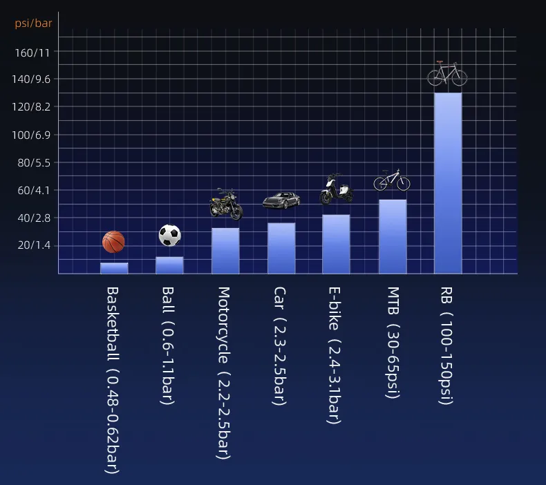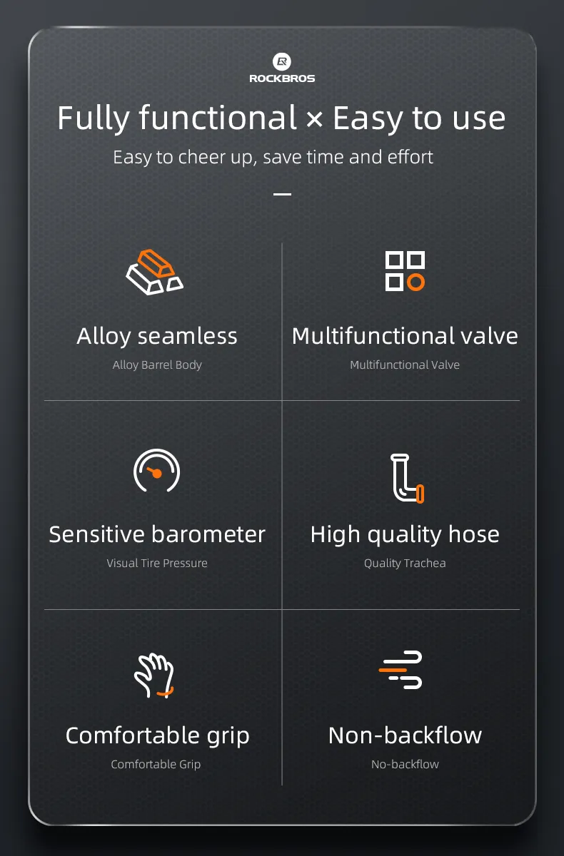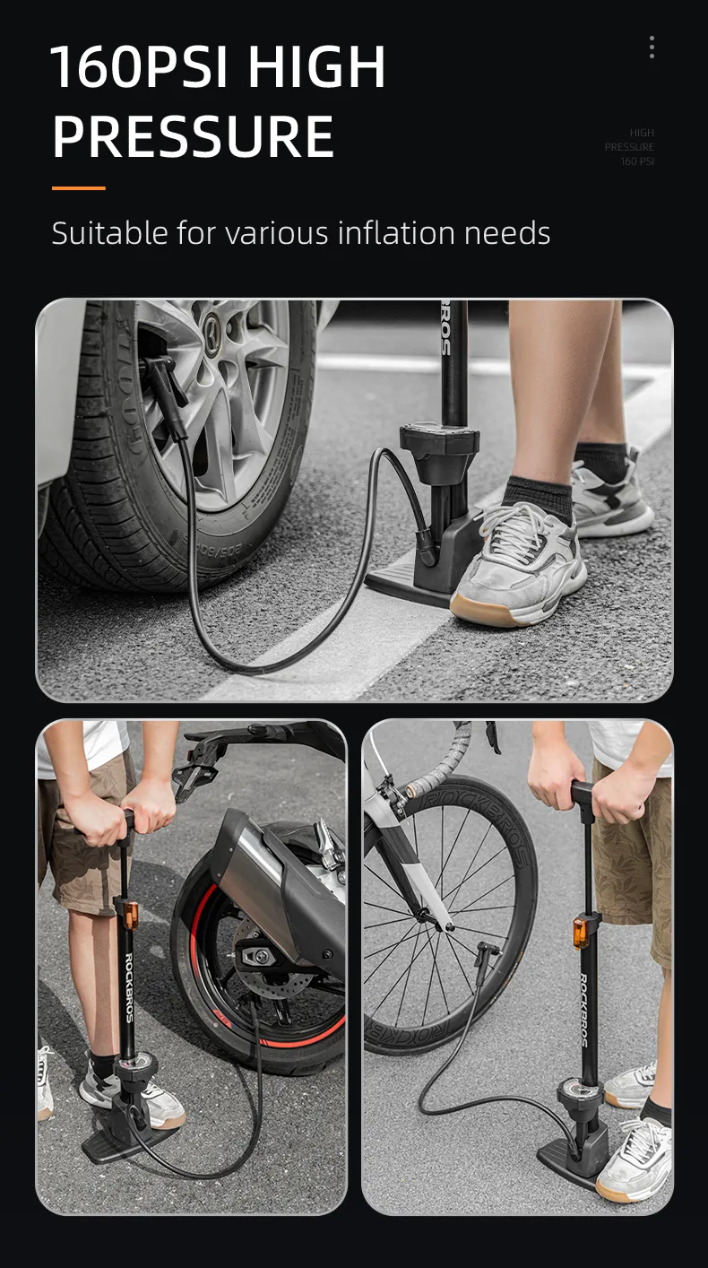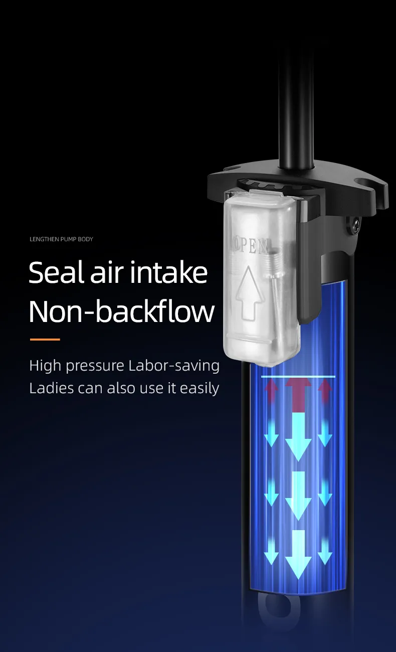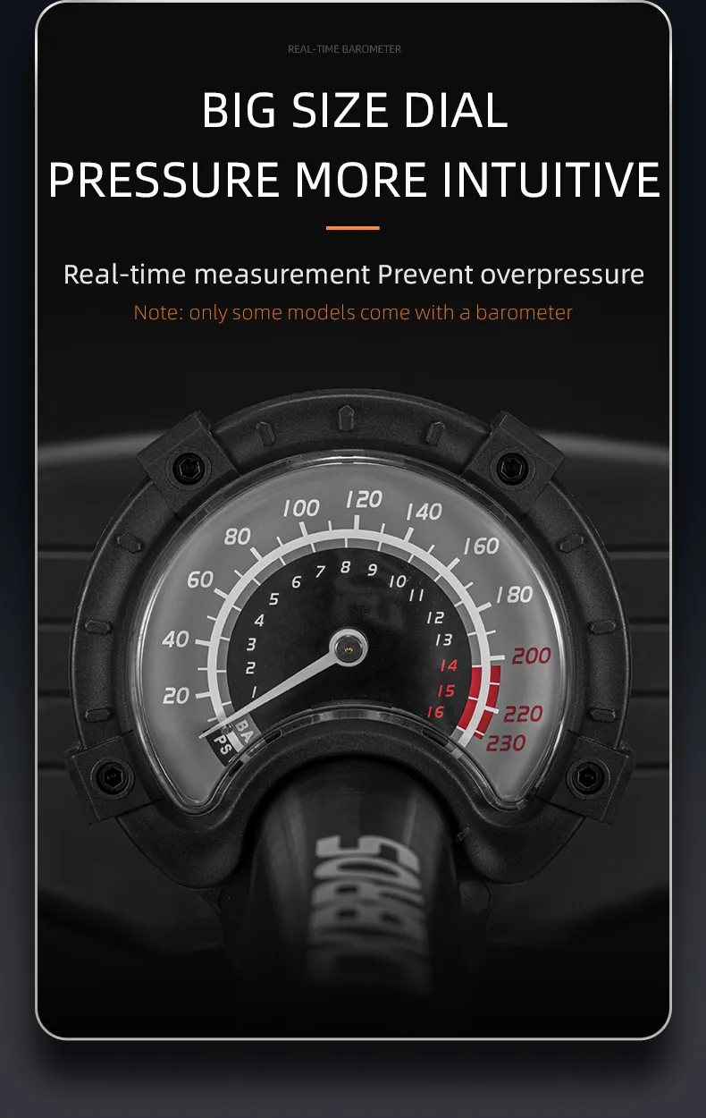 Suitable for various inflation needs T-Grip Stable & Fast Ergonomic Design Higher Efficiency Large size dial Pressure more intuitive Lengthened seamless barrel Seal air intake Non-backflow
