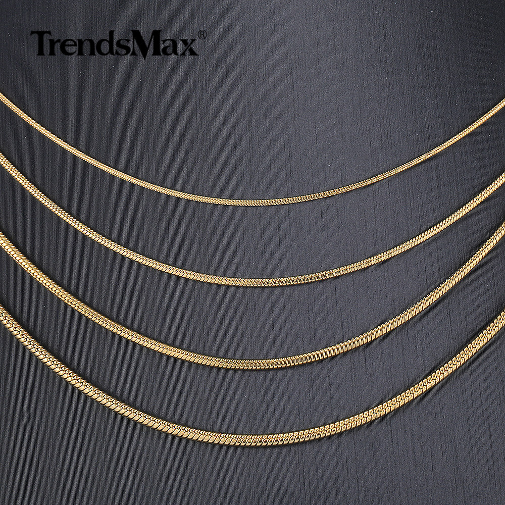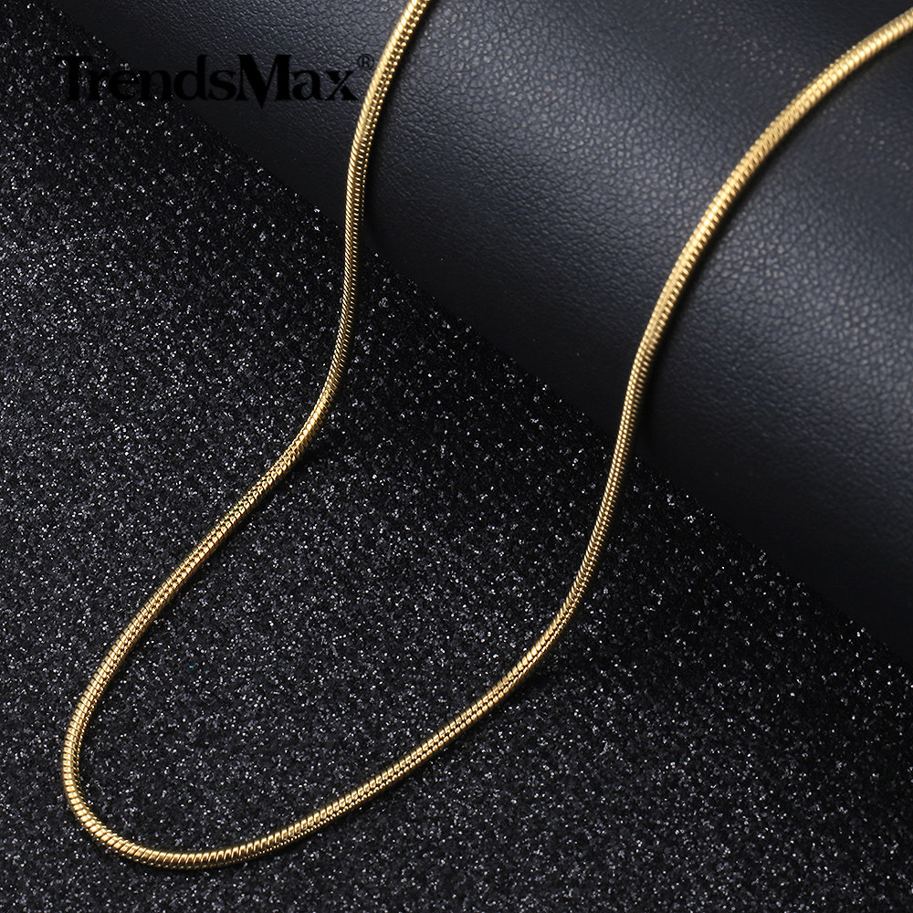 0.9-2.0mm Gold Plated Stainless Steel Round Snake Chain Necklace Women Men Link