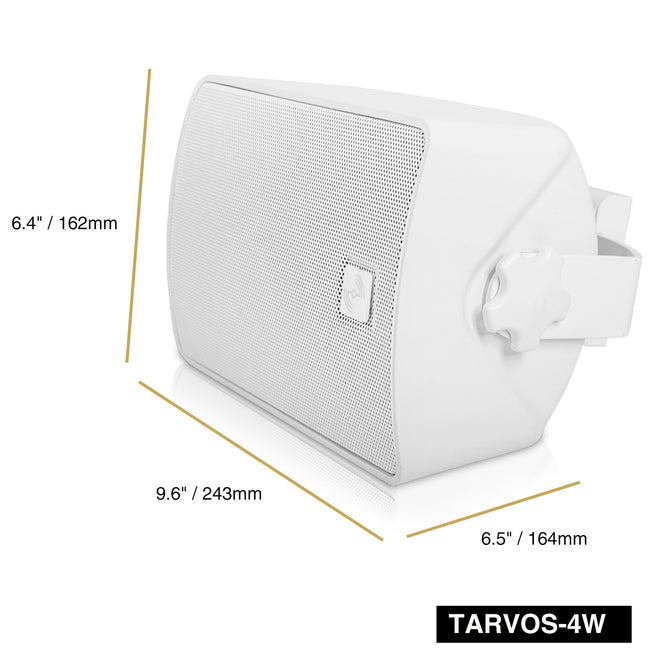 Introducing the TARVOS Series coaxial speakers, the TARVOS-4W-PAIR is your go-to solution for IP56 rated coaxial speakers. This package includes a pair of TARVOS-4W coaxial surface-mount speakers, each featuring a 4.5" woofer and a 1" coaxial compression driver delivering a powerful 50W RMS and 100W program power at 8Ω.