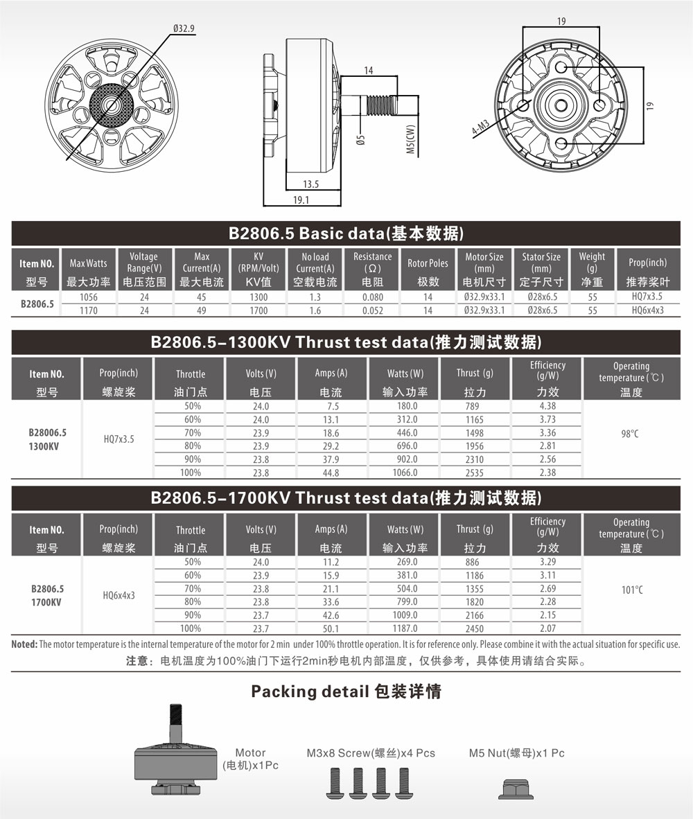 This series brushless motor is the upgraded motor, 14P high torque motor design, which is smooth, reliable and powerful. Each rotor was dynamically balanced with high speed, ensure the motor high-speed running without shake. Suitable for FPV Drone.