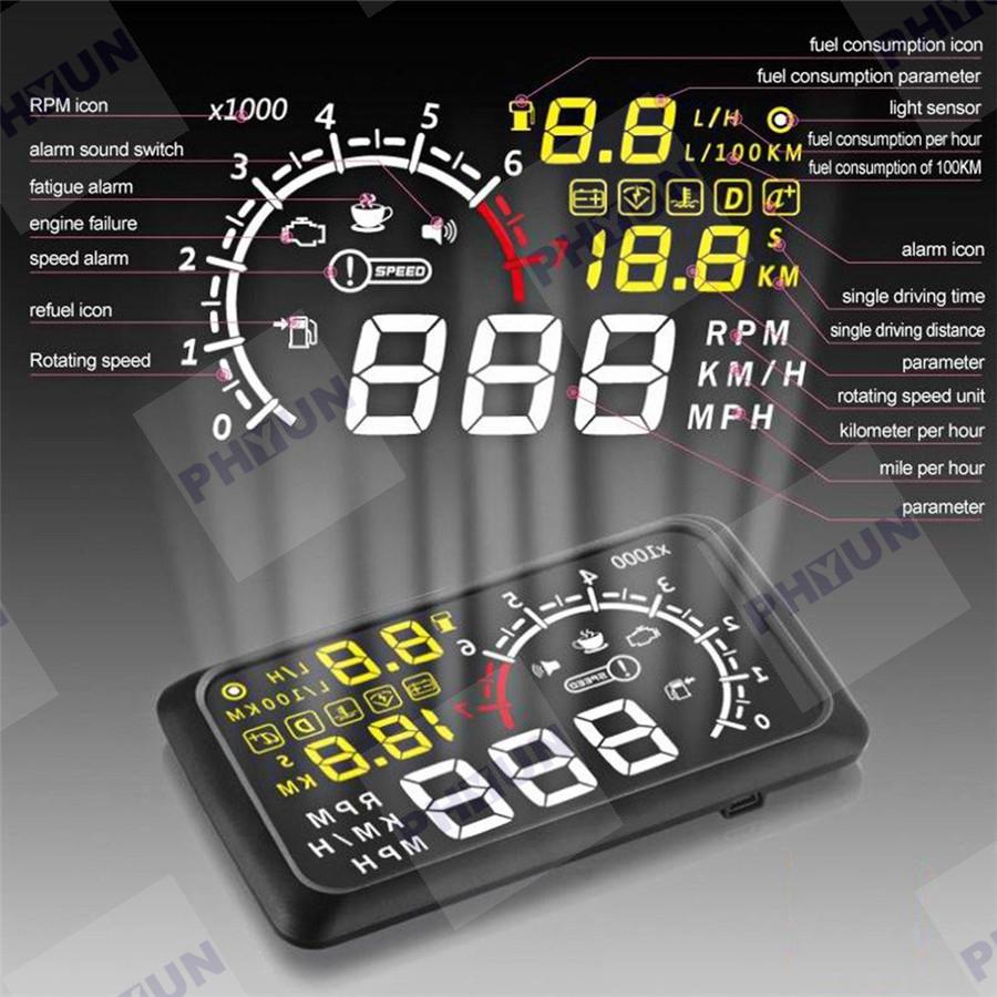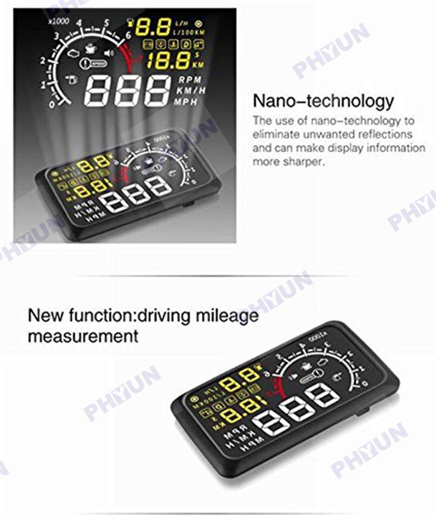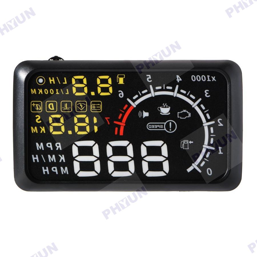 5.5" Car HUD OBD2 Port Head Up Display Speed Alarm Engine Failure RPM Refuel X3