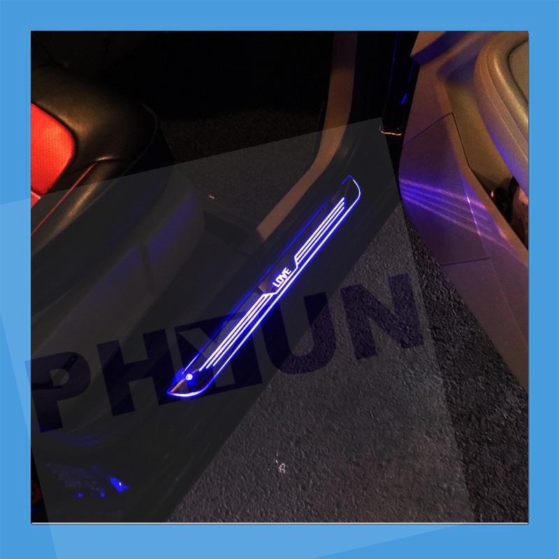 2PCS Blue LED Front Door Sill scuff Cover induction moving light Welcome lamp