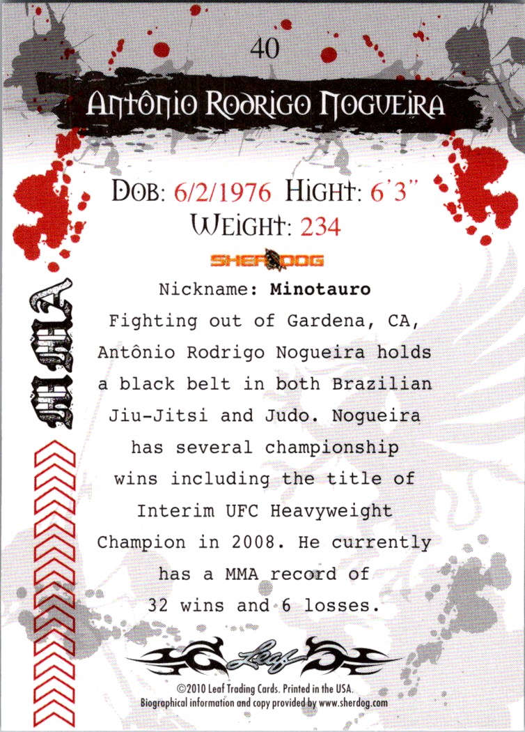 | 2010 Leaf Mma Antonio Rodrigo Nogueira #40 |