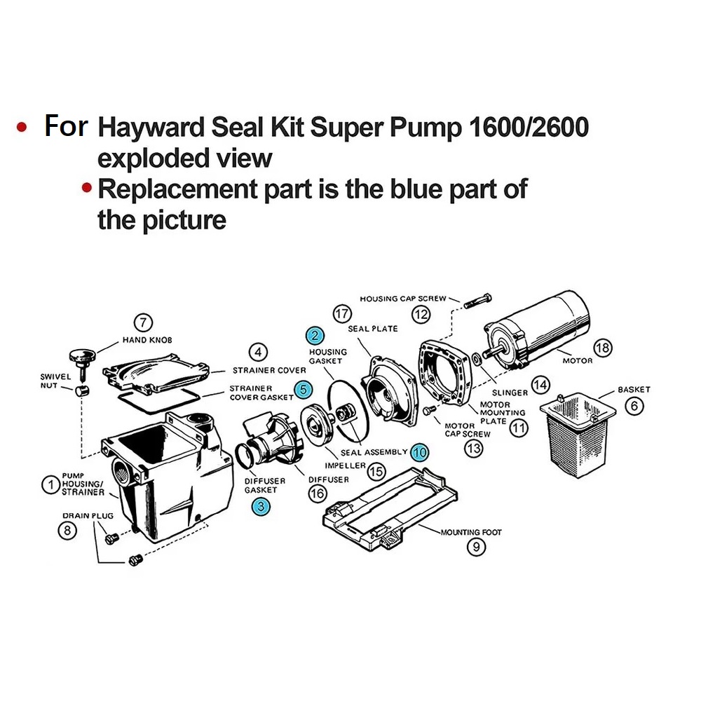*Gasket Seal O-Ring Rebuild Kit For Hayward Super Pump SP2600 SP1600 SP2600X Repair. Generic Replacement For Pump Rebuild Kit.