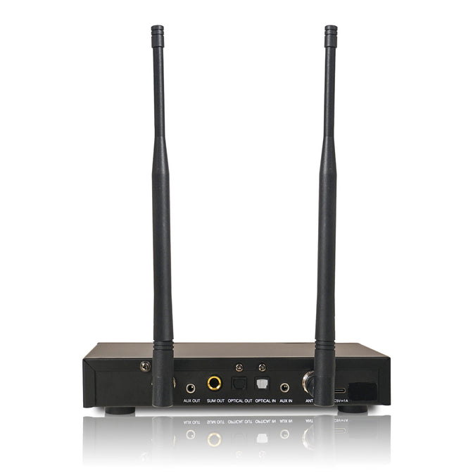 - FLEXIBLE CONNECTIVITY OPTIONS: The receiver has one 3.5mm (1/8”) TRS and one optical input connector, one 3.5mm, 6.35mm (1/4”) TRS and one optical output connector for easy setup with your home theater or speaker system. It supports both wireless and wired microphones, with separate volume controls for each channel. This system is compatible with a wide range of sound bars, home receivers and speakers such as Bose, Sonos and more.