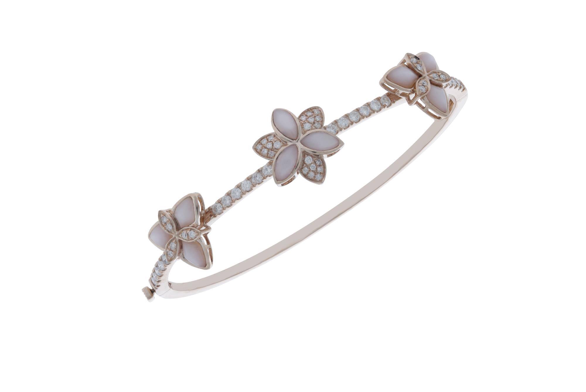 14k Rose Gold White Diamond Flower Bangle Handmade Jewelry