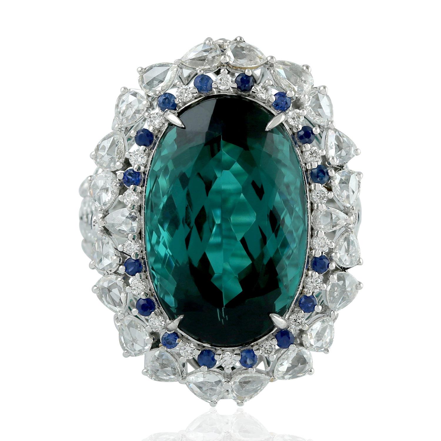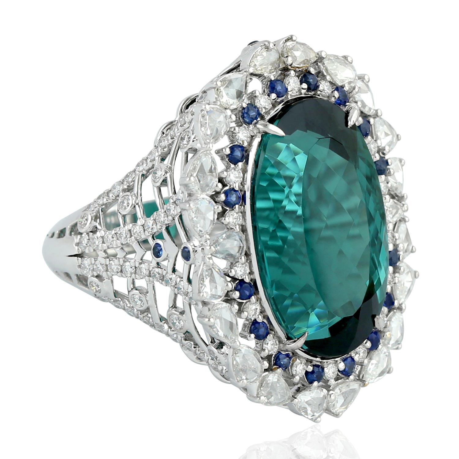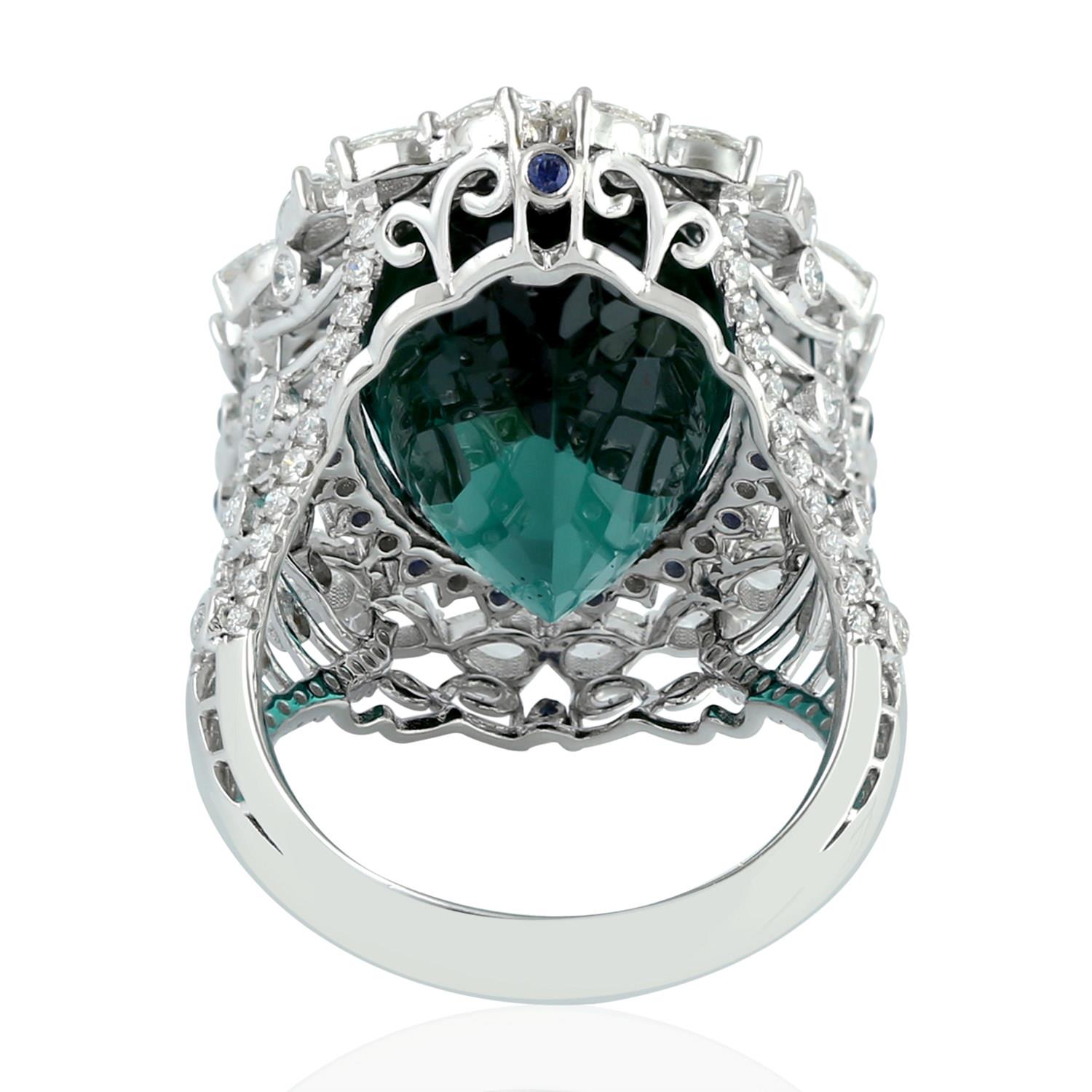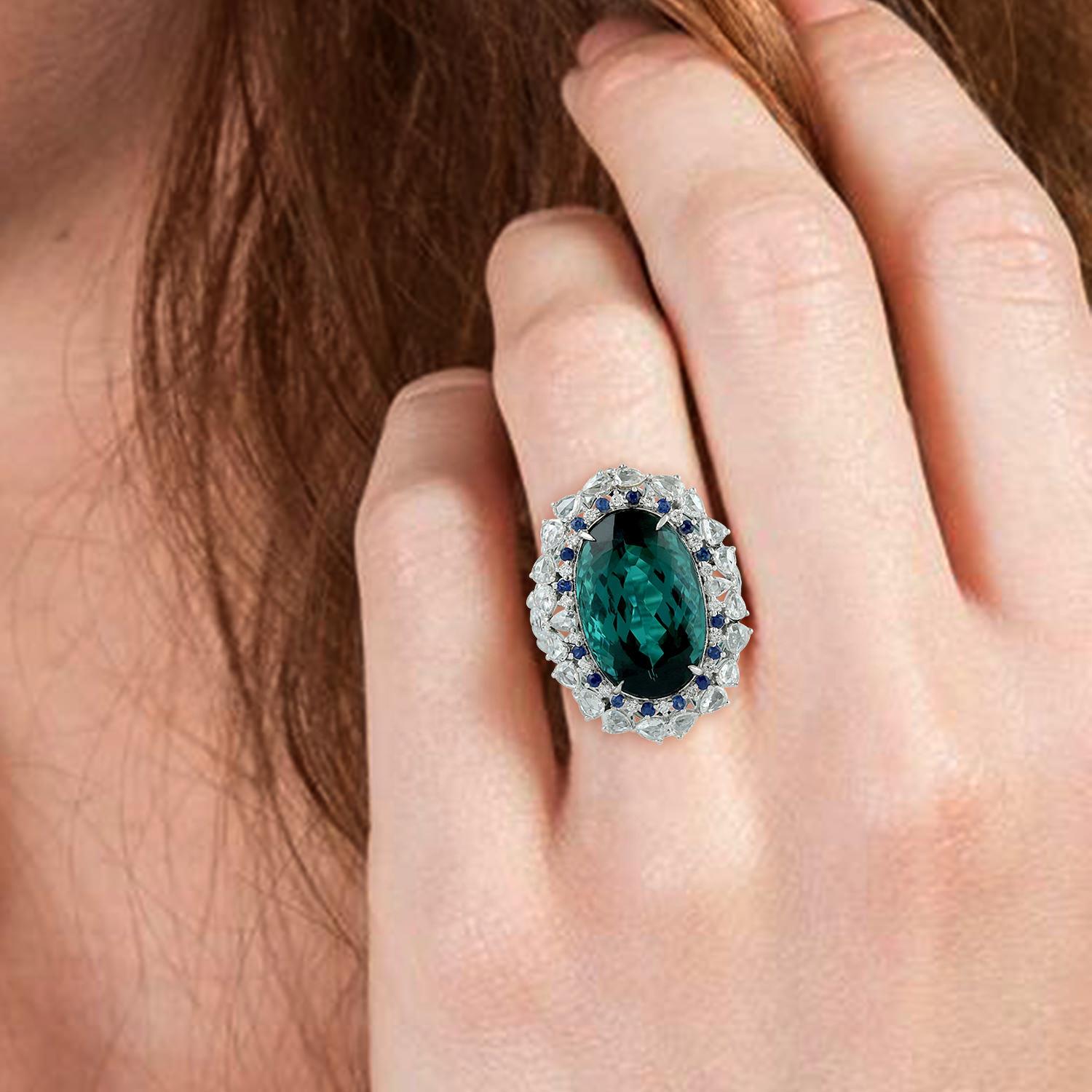 Valentine 18,7 Karat natürlicher Turmalin-Cocktailring, 18 Karat Weißgold-Diamantschmuck