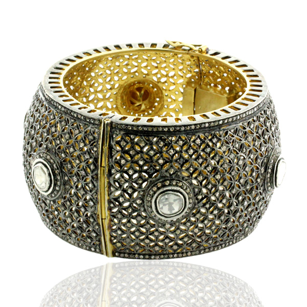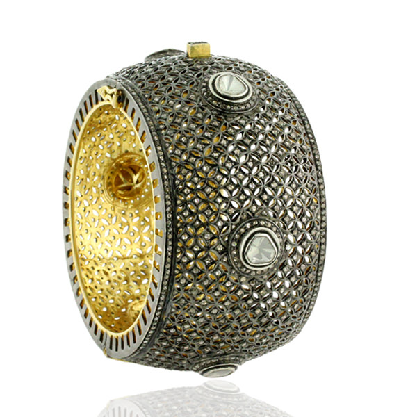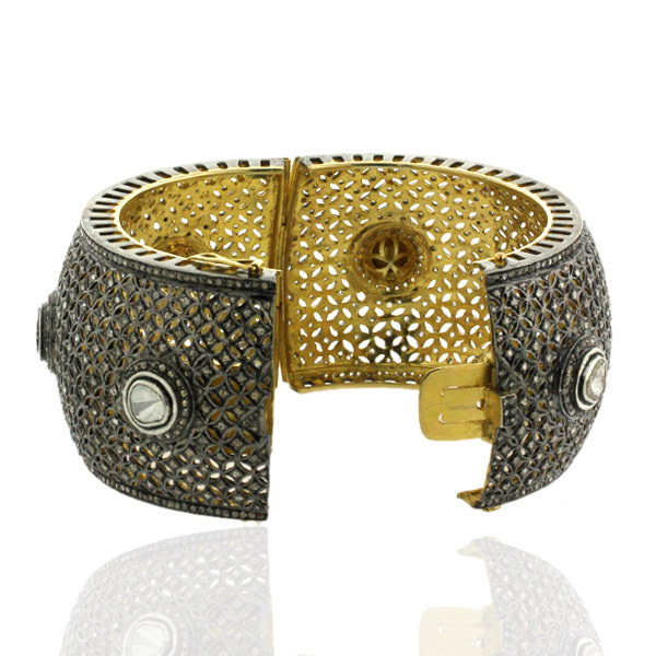 Breiter Designer-Armreif aus 14 Karat Gold mit ungeschliffenem Diamant und Schmuck aus 925er-Sterlingsilber