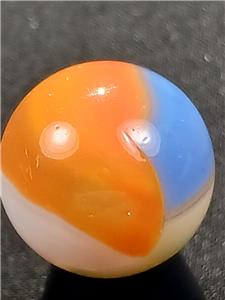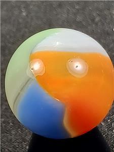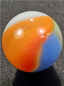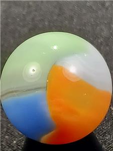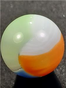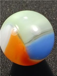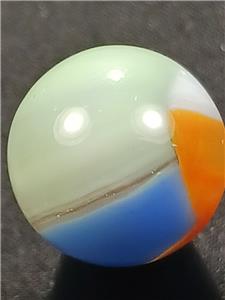 Offered here is a splendid example of American ingenuity and craftsmanship. The history of early machine made marbles is a veritable thrill ride encompassing wonderful colors, innovation and great people. Those who collect these brilliant nuggets of master level glasswork find others of like mind throughout the world, either online or at various shows and events. There are fun and wacky "Marble Familys" out there filled with some of the nicest human beings you will ever meet and delicious eye candy just waiting to be scooped up by a sharp eyed collector. But, BUYER BEWARE: Marble Collecting is Addictive and NOT for the Weak of Heart or Spirit! Trying to attribute that one swirl to Alley's Sisterville location or squinting to see if the tail of the "9" ends abrubtly at a seam on that hand gathered slag you have can be quite daunting at first. But don't give up! The more marbles you collect and handle, the more profficient you become at identification; And the more you understand why marble collecting is such an awesome pastime.