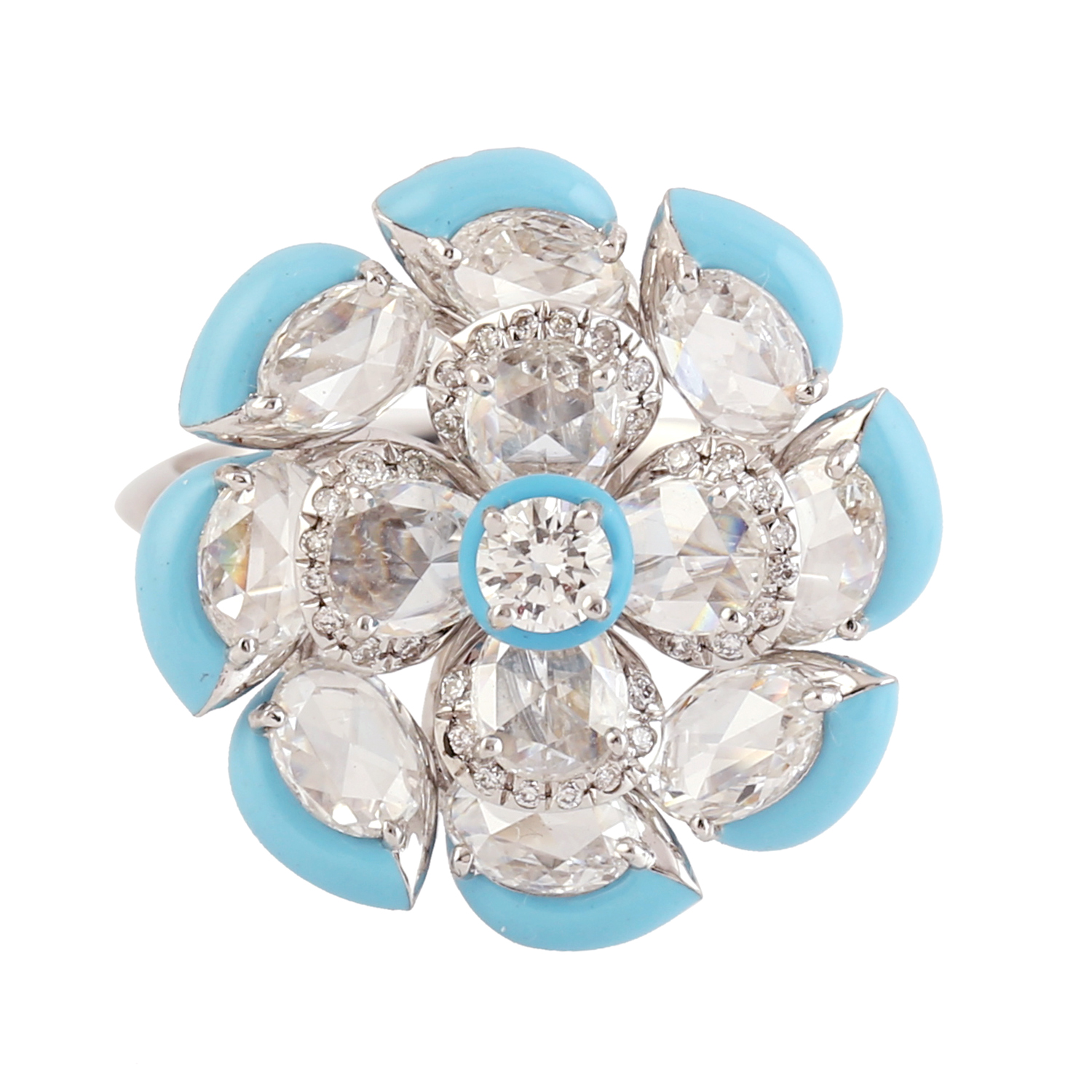 18k White Gold Natural Diamond Enamel Flower Rings Women Engagement Rings