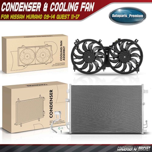 2x AC Condenser & Dual Cooling Fan Assembly Kit for Nissan Murano Quest V6 3.5L