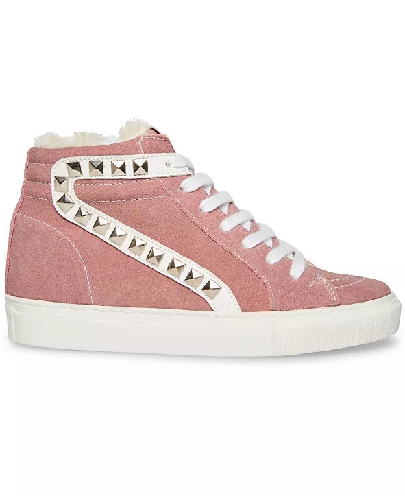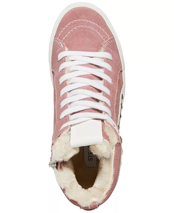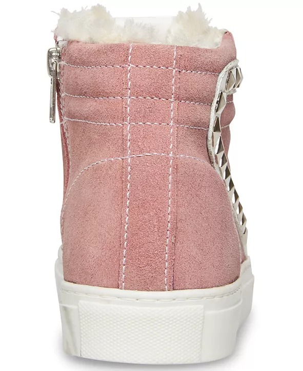 Street-chic goes luxe in the plush faux-fur linings and metallic studded flash of the Tracey-F high-top sneakers