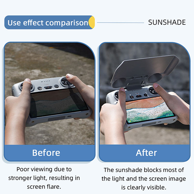 Effectively block the top glare, enhance the screen visibility when aerial photography in bright light environment