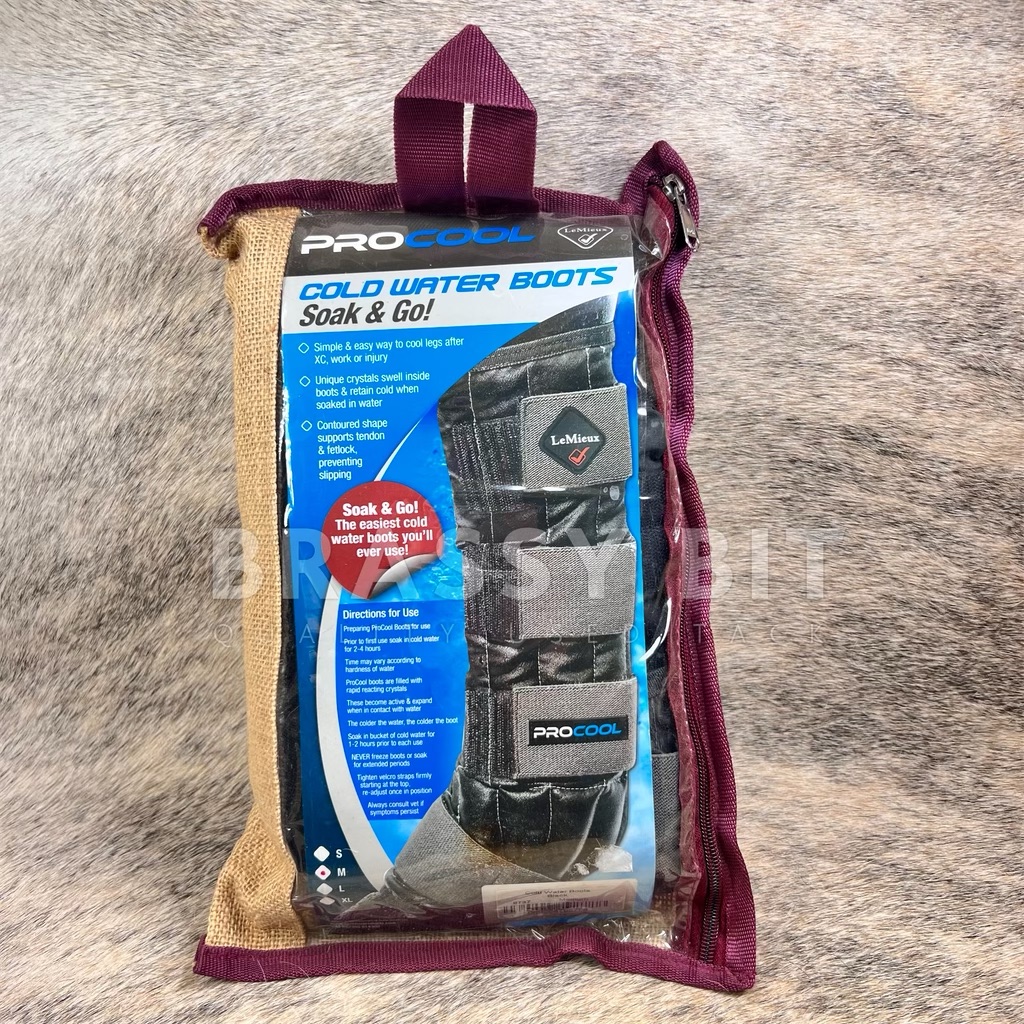 Ideal for cooling legs are X Country, work or after an injury, the Cold Water boots contain unique reactive crystals that swell and retain the water when soaked. Their contoured shape is great when supporting fetlocks and tendons. Soak for 1+ hours before application or after long periods of storage using a bucket of cold water, adding ice when available. Keep this bucket out of direct sunlight and avoid over-soaking as crystals can swell excessively. These boots can be placed in a refrigerator but never in a freezer. Once soaked, tighten the Velcro straps firmly around the leg, starting at the top and readjust once in position. Best results found when used for several 20-30 minute sessions. Once treatment is complete leave the boot to dry prior to storage and re-soak for 2-3 hours after long periods of inactivity.