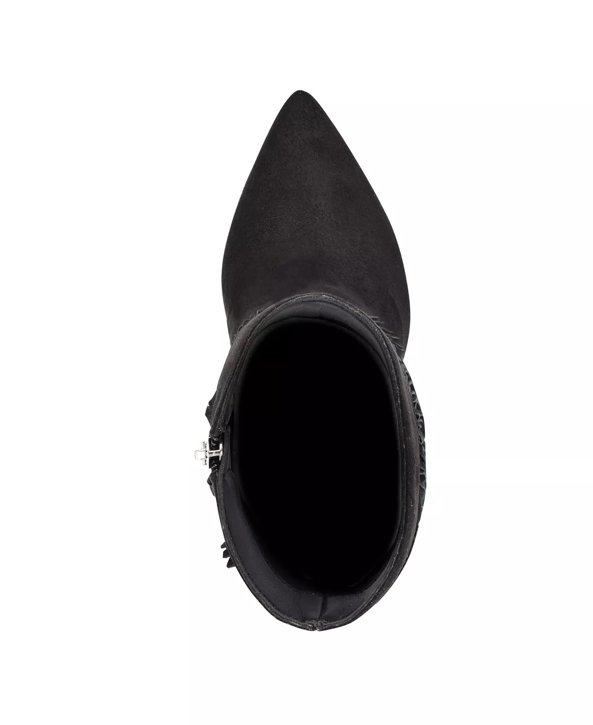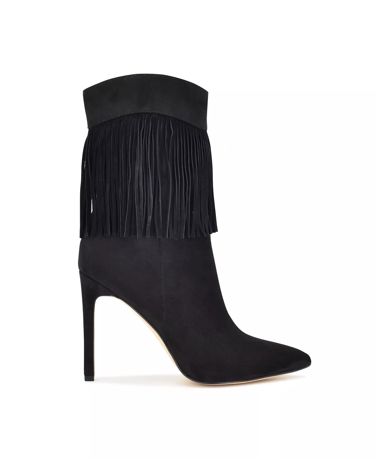Stay stylish in the Tries booties. Featuring a fringe trim adding western inspiration to a bootie lifted by a sky high.