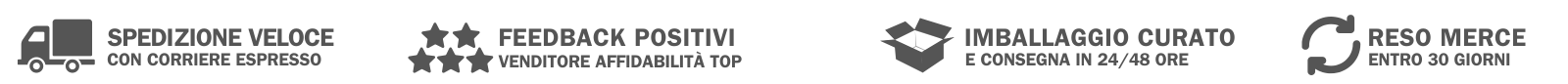 Tempi Consegna: Per ordini effettuati entro le ore 12:00 a.m., la spedizione avverrà nella stessa giornata;