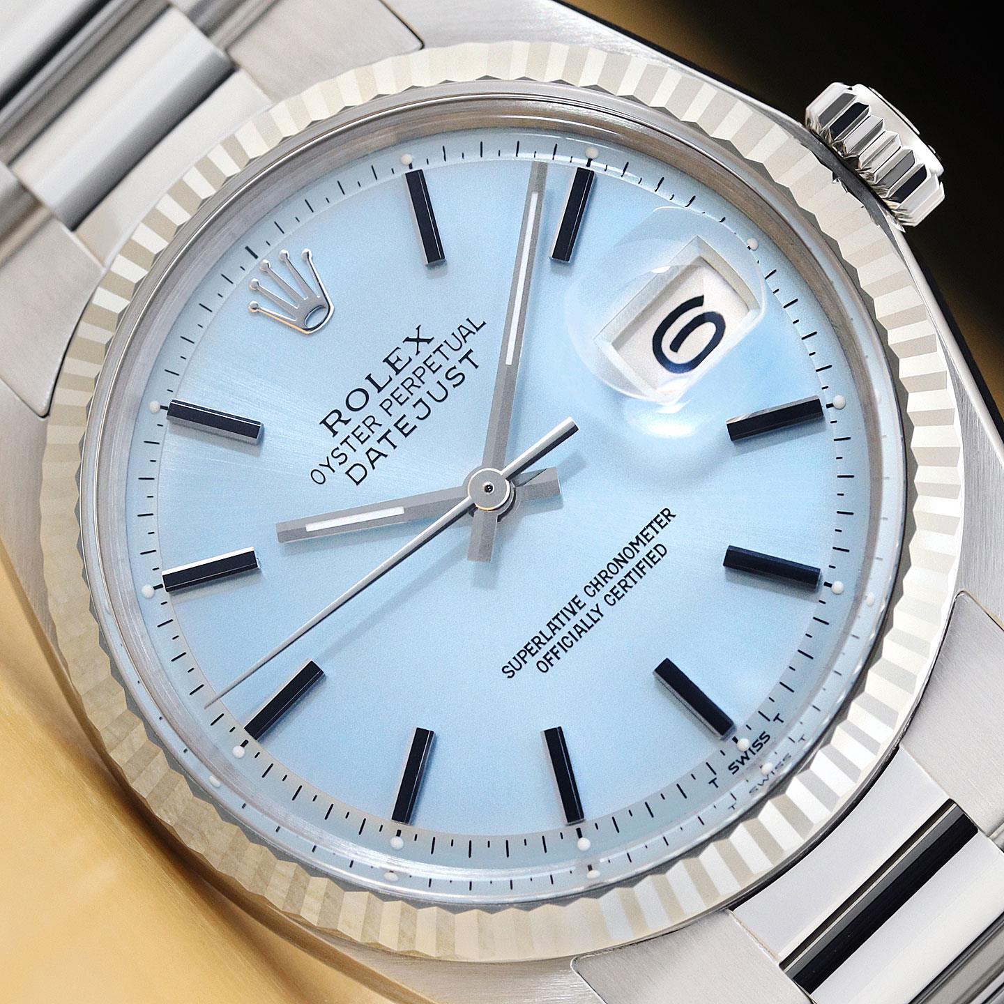 ROLEX MENS DATEJUST 1601 18K WHITE GOLD STAINLESS STEEL ICE BLUE OYSTER WATCH