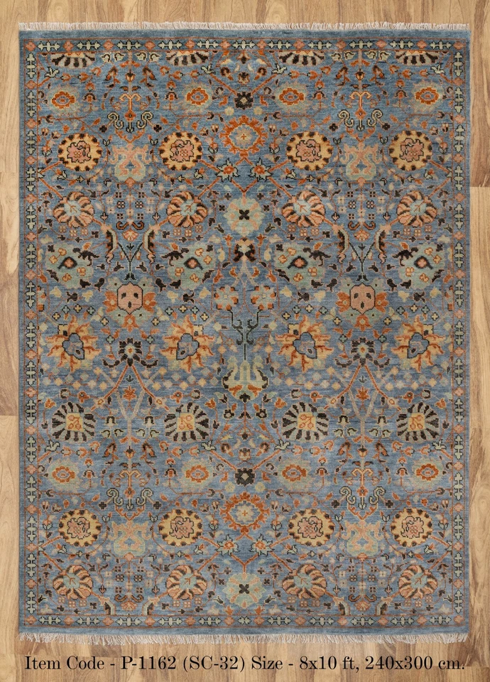 8x10 Blue Turkish Style Fine Hand Knotted Wool Area Rug, CSUTOMIZE in any SIZE