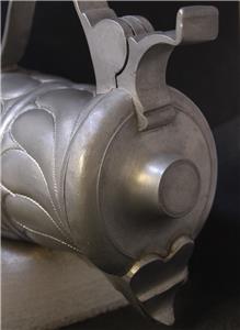 This wonderful serving beer stein/tankard was made in the late 1880s - 1890s. It's a simple but elegant spouted flagon called in Germany "Schabelstitze" - a copy of a 17th century serving stein. It is made of pewter in the style called Historismus (Historicism), very popular in Germany in the 1880s-1890s. The Historismus approach comprises artistic styles that draw their inspiration from recreating historic styles or imitating the work of historic artisans.