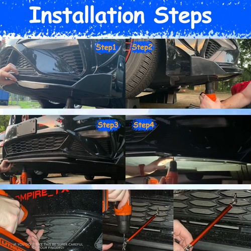 Note: Require drilling holes into the bumper lip diffuser to attach safely to the vehicle.