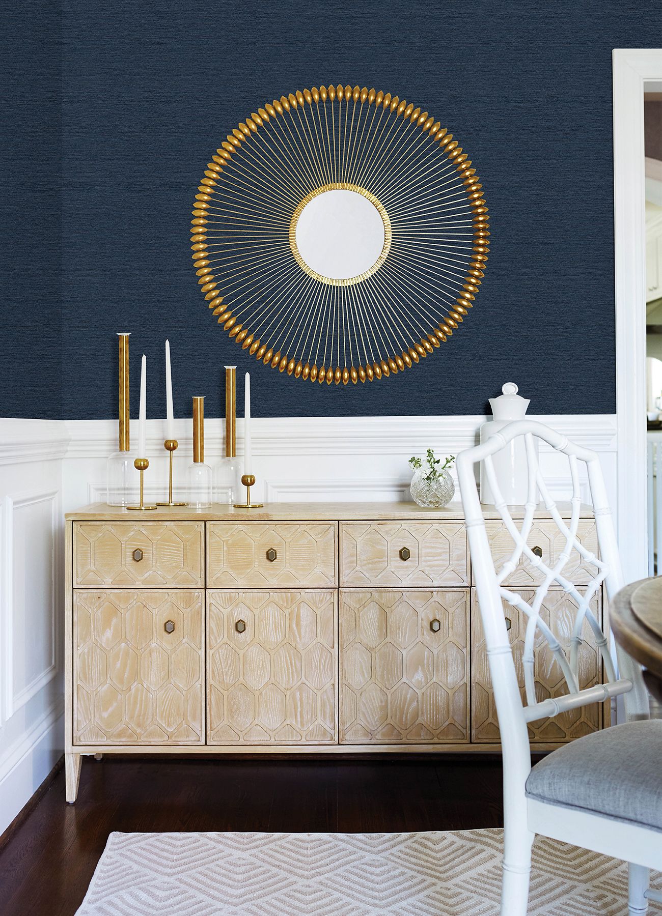 3122-10212 Gump Navy Faux Grasscloth Wallpaper with Accented Raised Inks in Navy Blue Colors Farmhouse Style Prepasted Acrylic Coated Paper