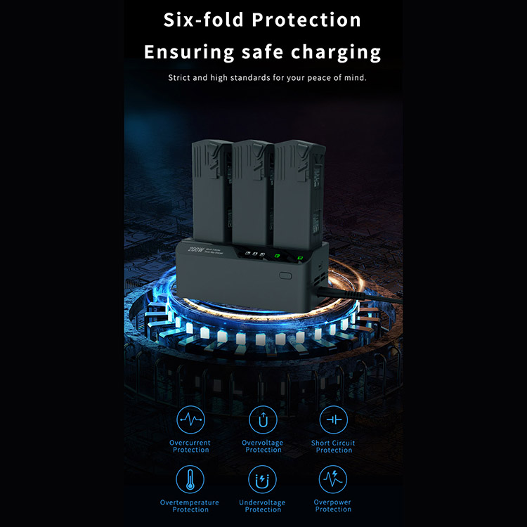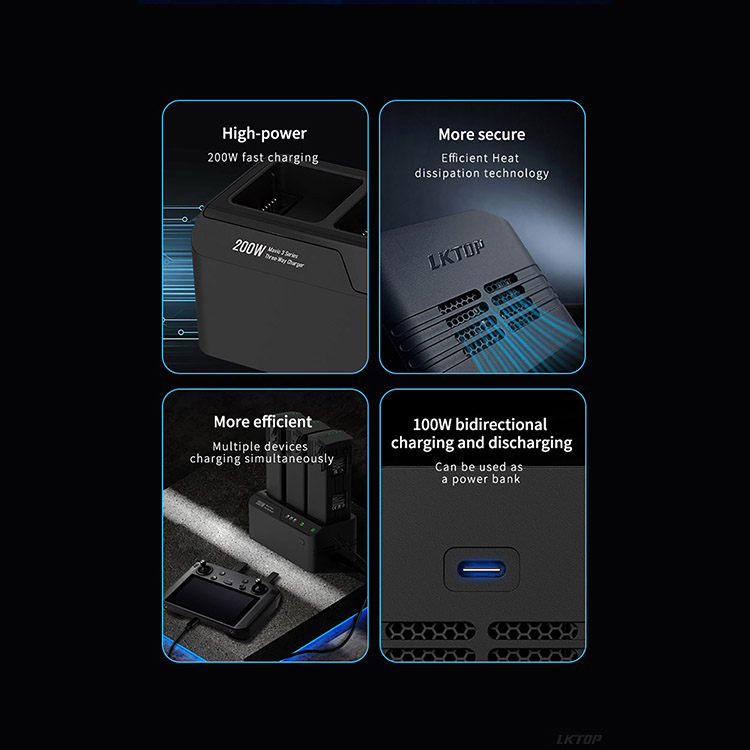 Drone Charger 200W Fast Charging Three Way Charger Charging Accessories for DJI Mavic 3 Series Batteries