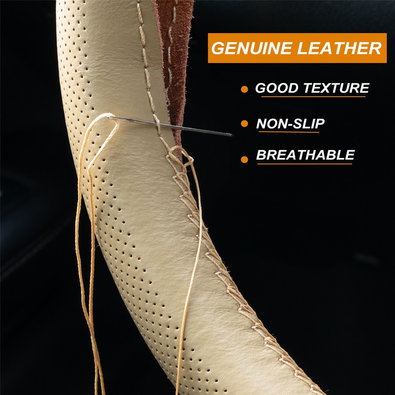DIY Hand Sewing Genuine Leather Punched Breathable Steering Wheel Cover with Needle and Thread