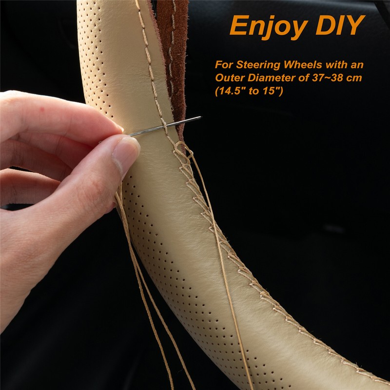 Genuine Leather DIY Car Steering Wheel Cover Anti-slip For 15"/38 cm Beige US