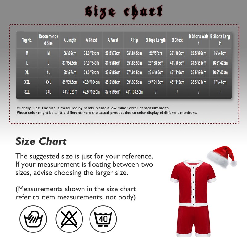 Size Chart: The suggested size is just for your reference. If your measurement is floating between two sizes, advise choosing the larger size. (Measurements shown in the size chart refer to item measurements, not body)