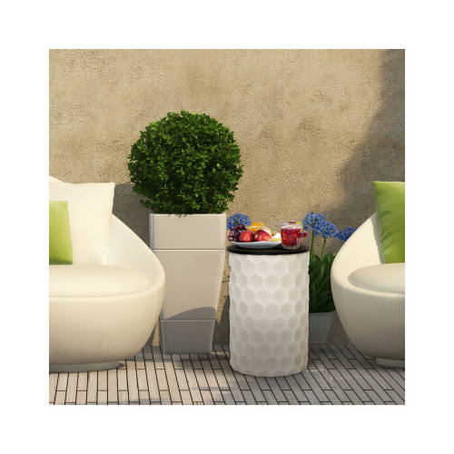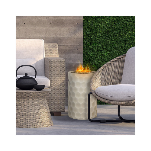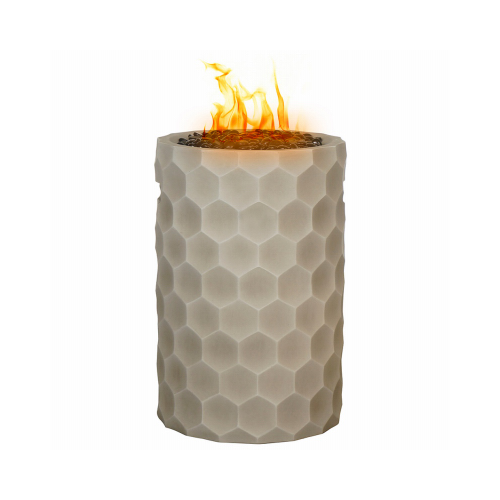 "Four Seasons, LP Gas Outdoor Fire Pit Column with Honeycomb Pattern Stone Look. Dimensions are 11.8"" D x 17.7"" H. Light by match. Includes Magnesium oxide base, Stainless Steel burner & plate, cover & glass beads."