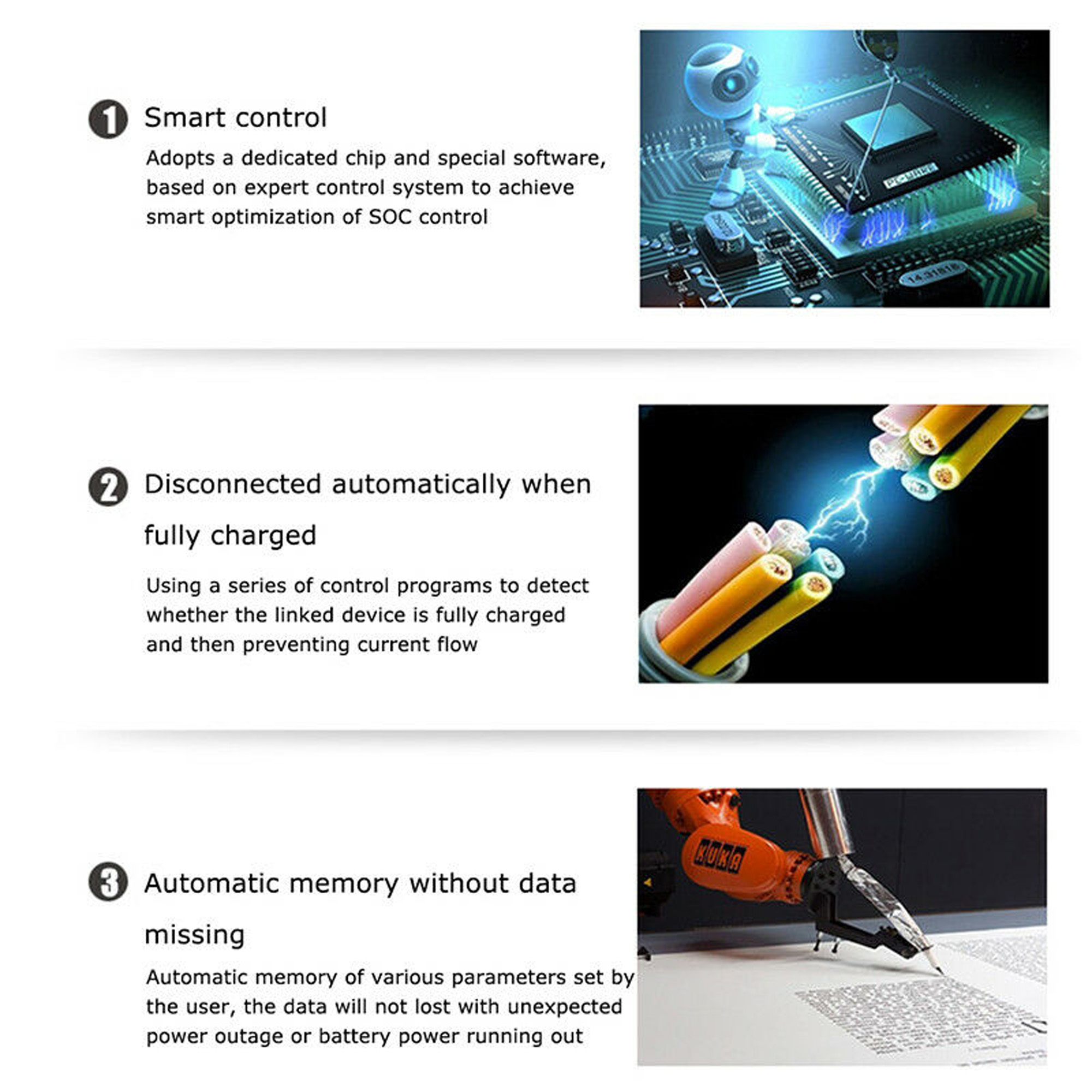 3. Complete 3-stage PWM charging management;