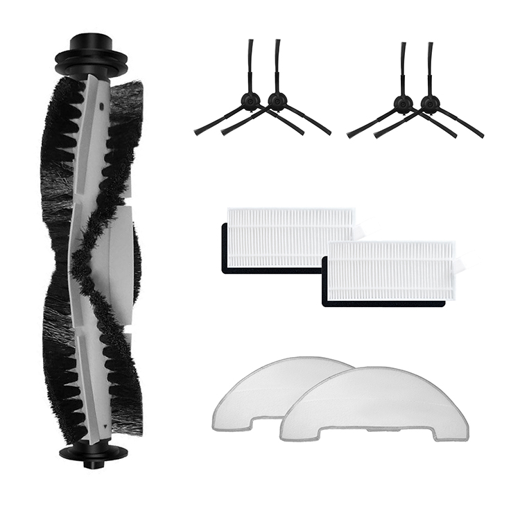 1x Main Brush + 2 Pairs of Side Brushes + 2x Filters + 2x Mops