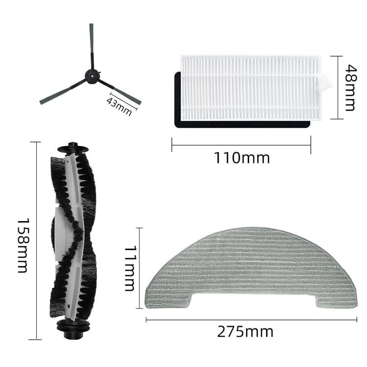 1x Main Brush + 3 Pairs of Side Brushes + 2x Filters + 4x Mops