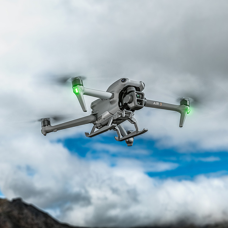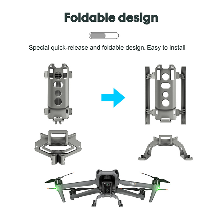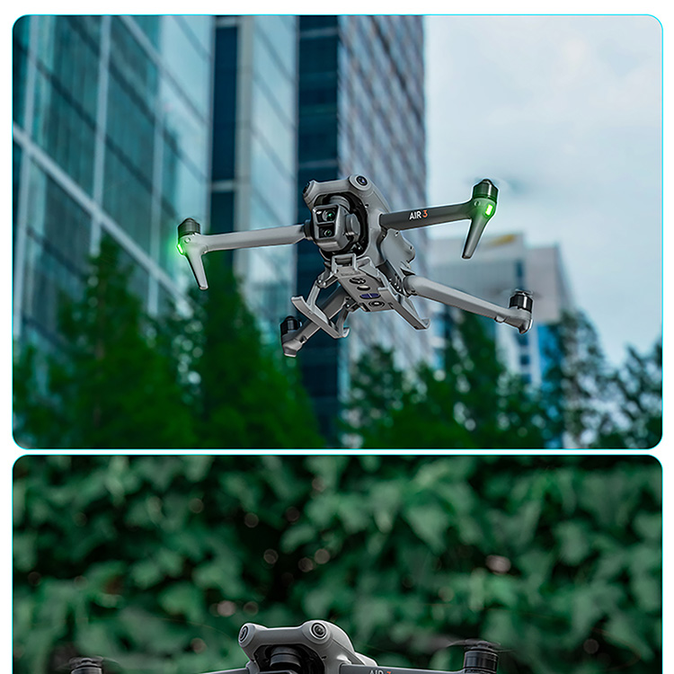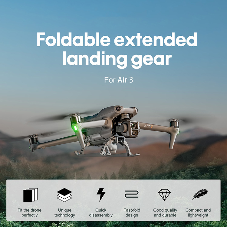 l The landing gear is specially designed for DJI AIR 3, it will not block the indicator lights, cooling vents, bottom sensing system and vision system, and the sled-like shape reduces aerodynamic drag during flight, making takeoffs and landings more stable