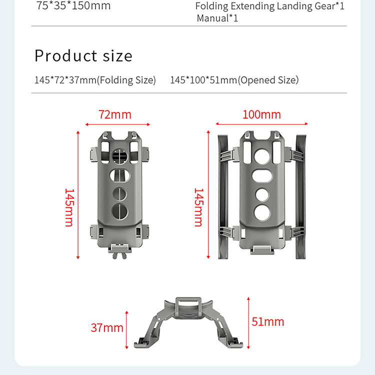 l Tailor-made, the landing gear is foldable and quick release design, easy to store and carry, easy to install or remove, will not shake or fall off during flight, and can be quickly replaced without removing the battery