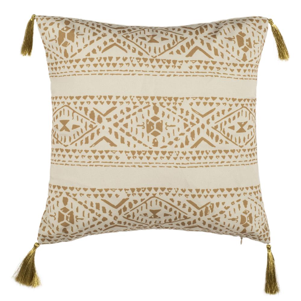 Reminiscent of travels through magnificent desert landscapes, the Safavieh Valen Pillow conjures the romance of journeys past and present. Mesmerizing and intricate brown artistic patterns and designs enliven every inch of its beige cover, while its exotics tassels inspire you to tell guests your most of captivating travel tales.