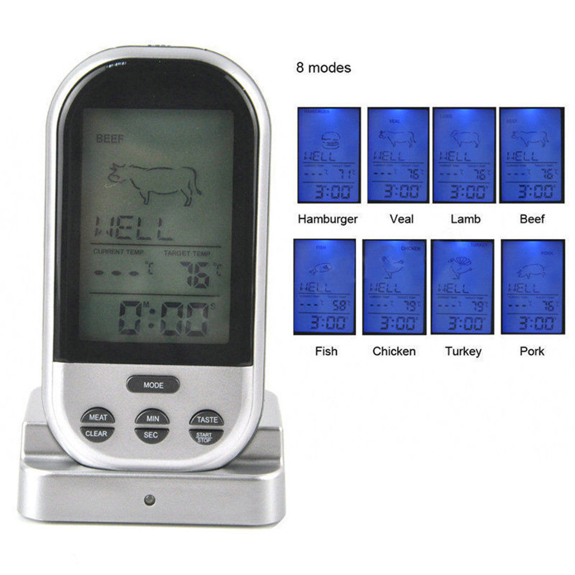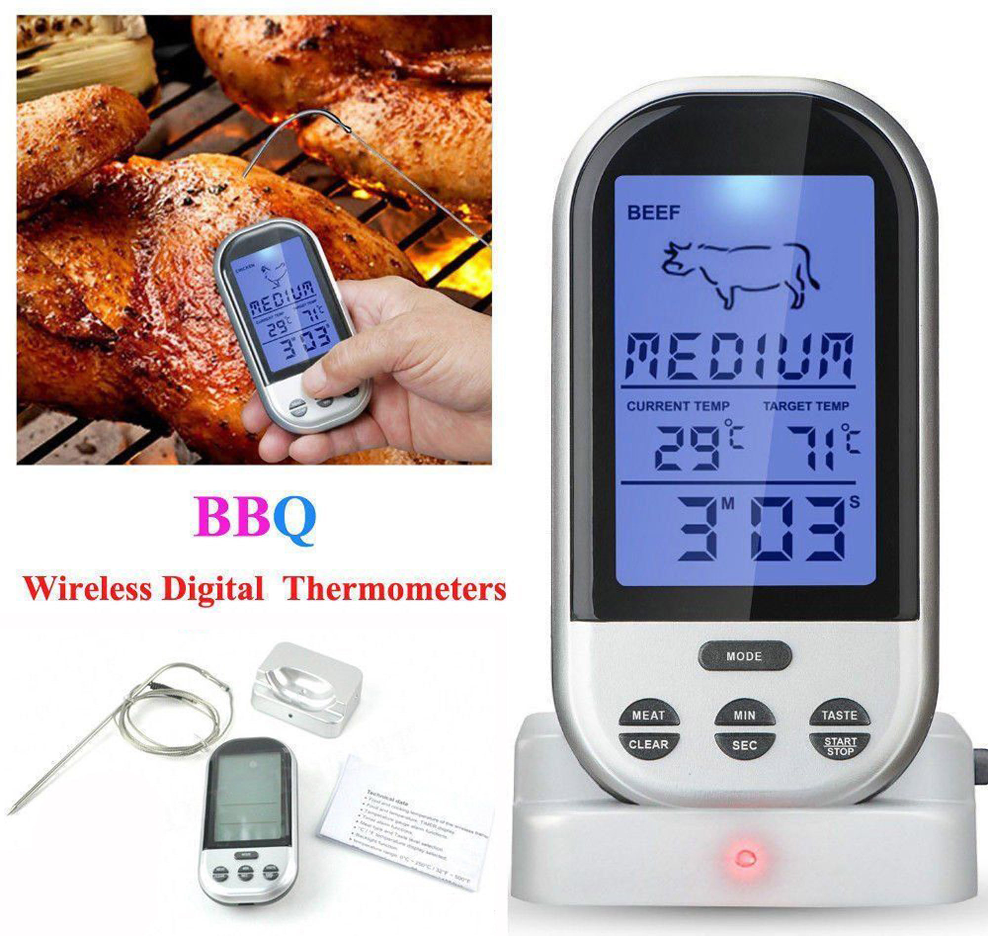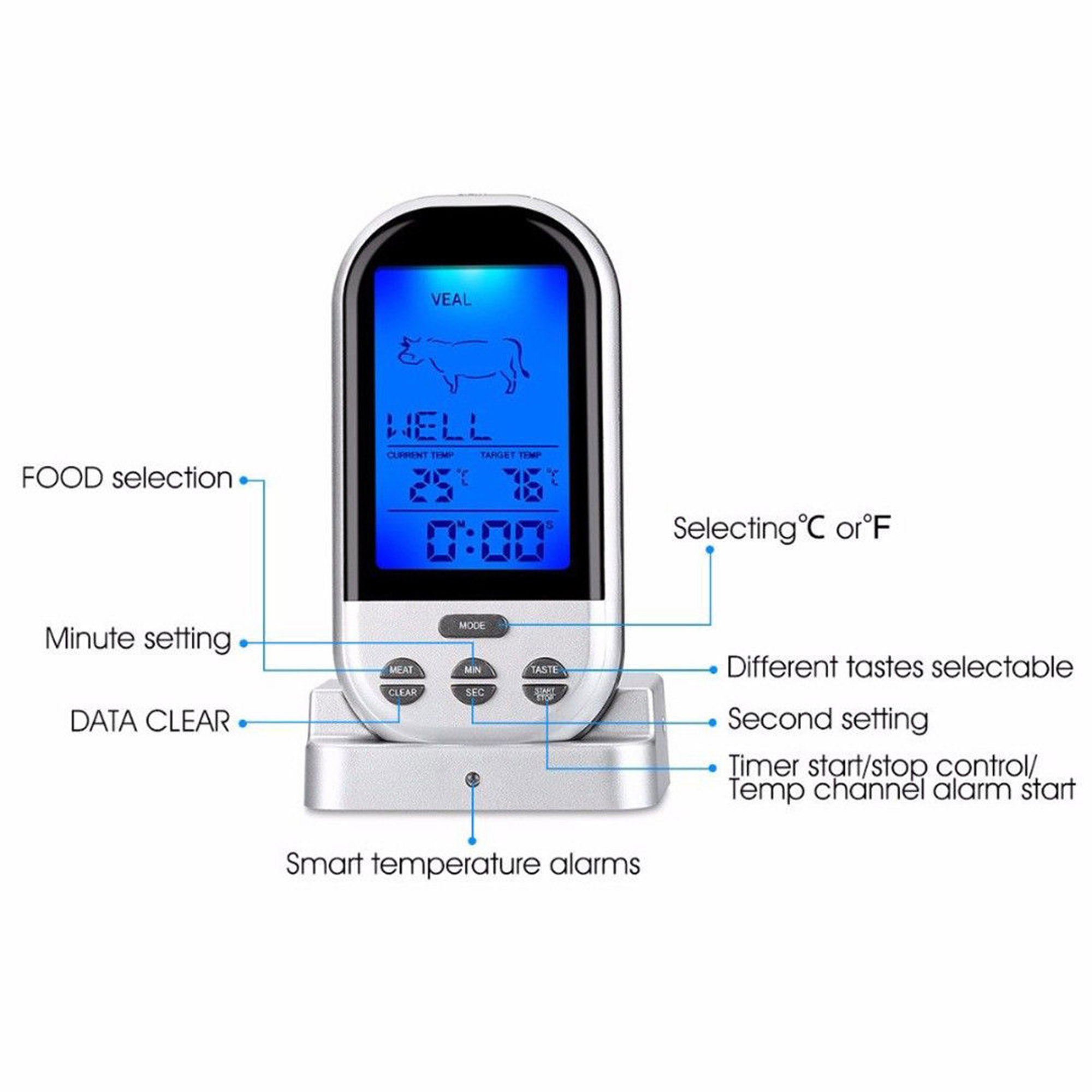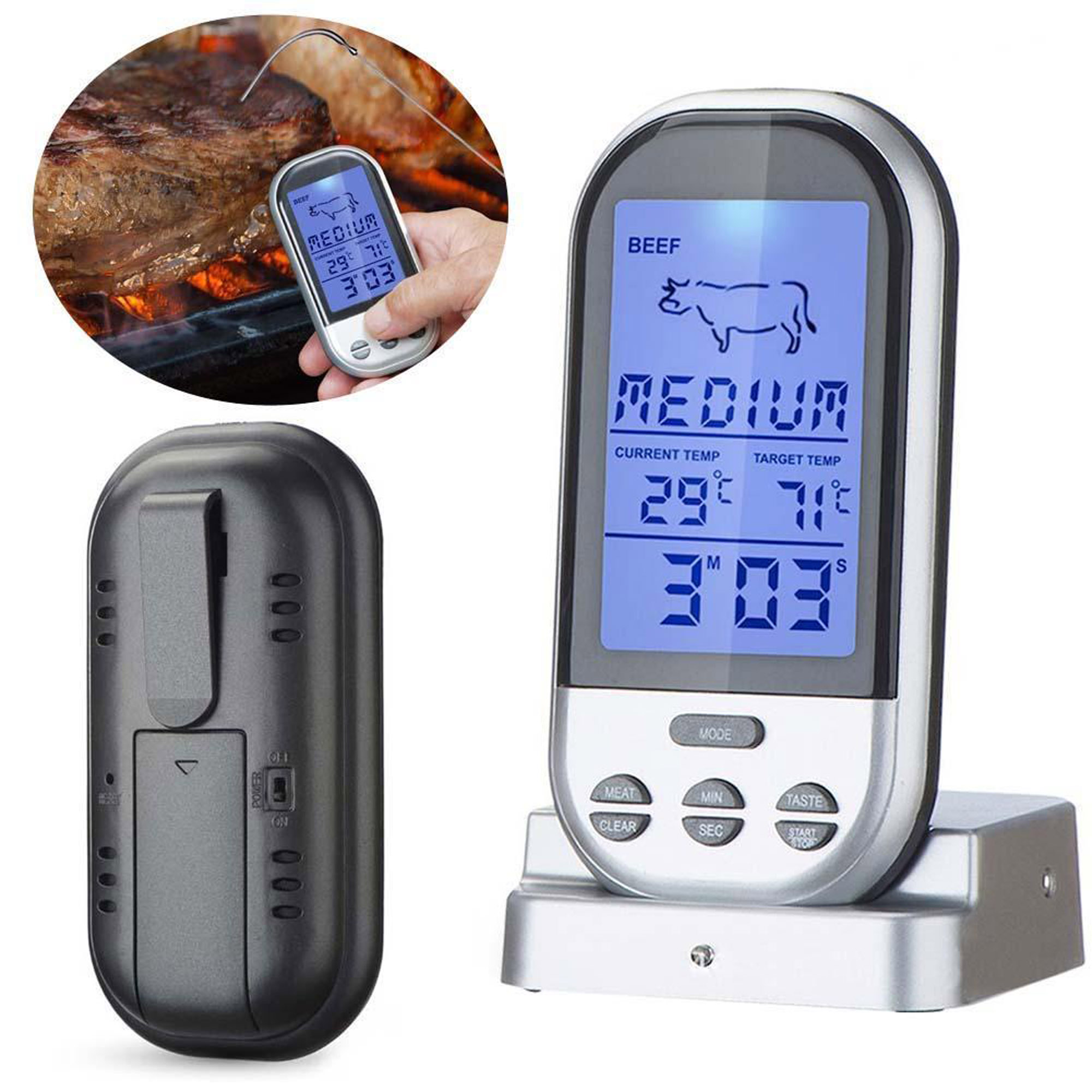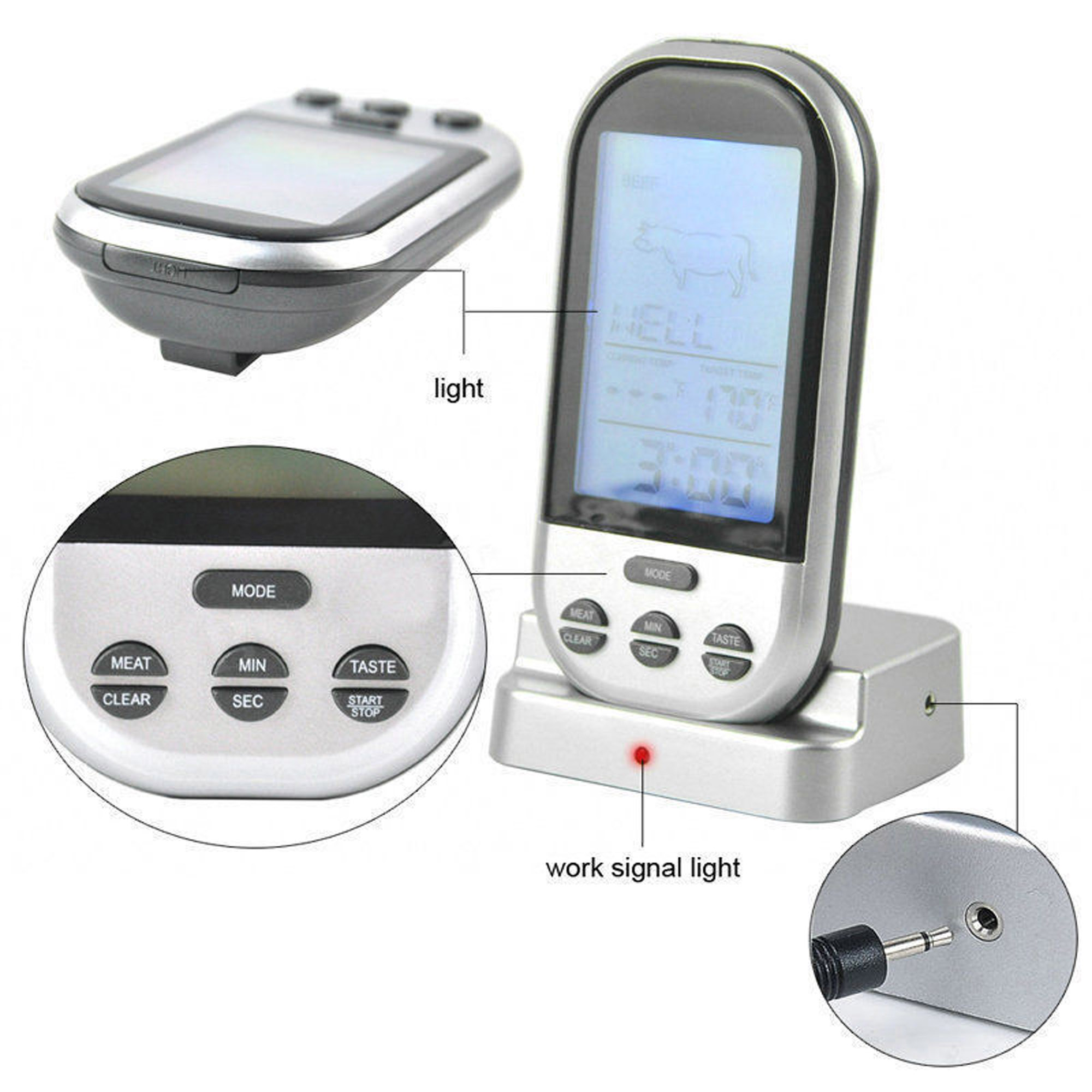 Wireless Remote Digital Food / Meat / Oven Thermometer With Temperature Sensor Probe for BBQ, Grilling, Roasting & Kitchen Cooking
