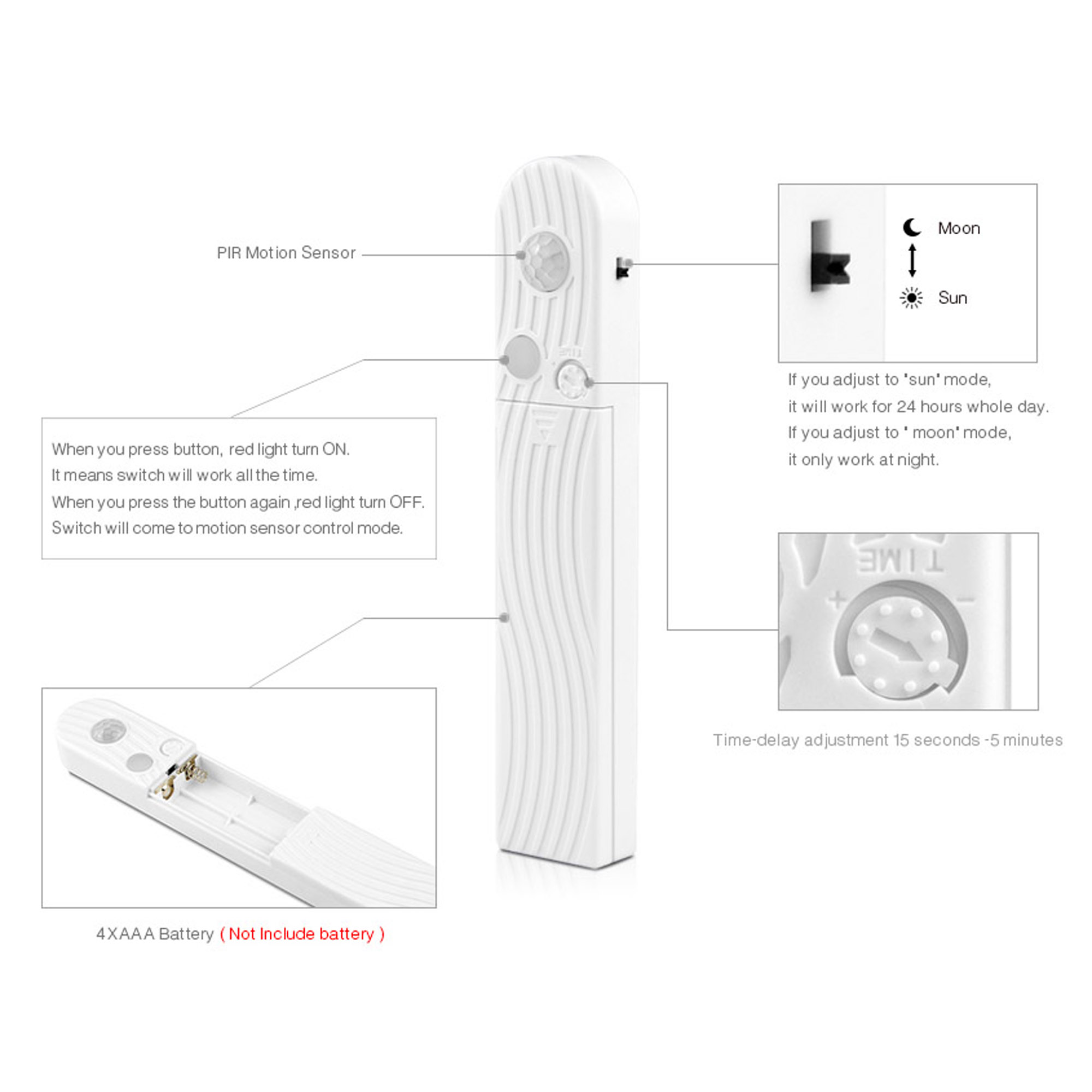 Working Modes: "ON" and "PIR"