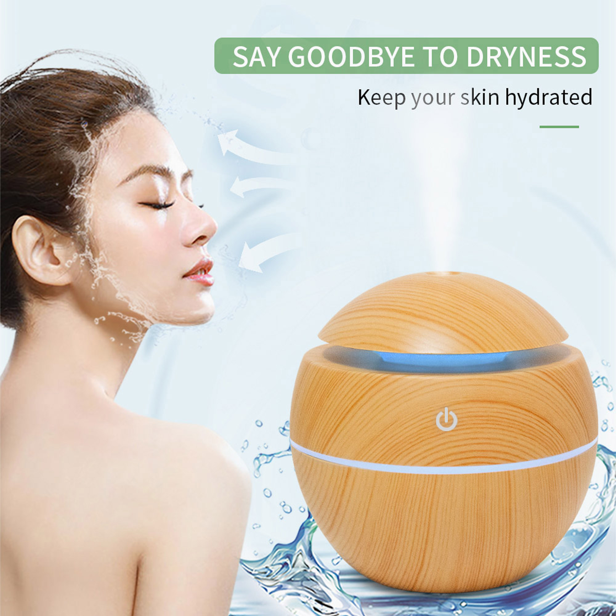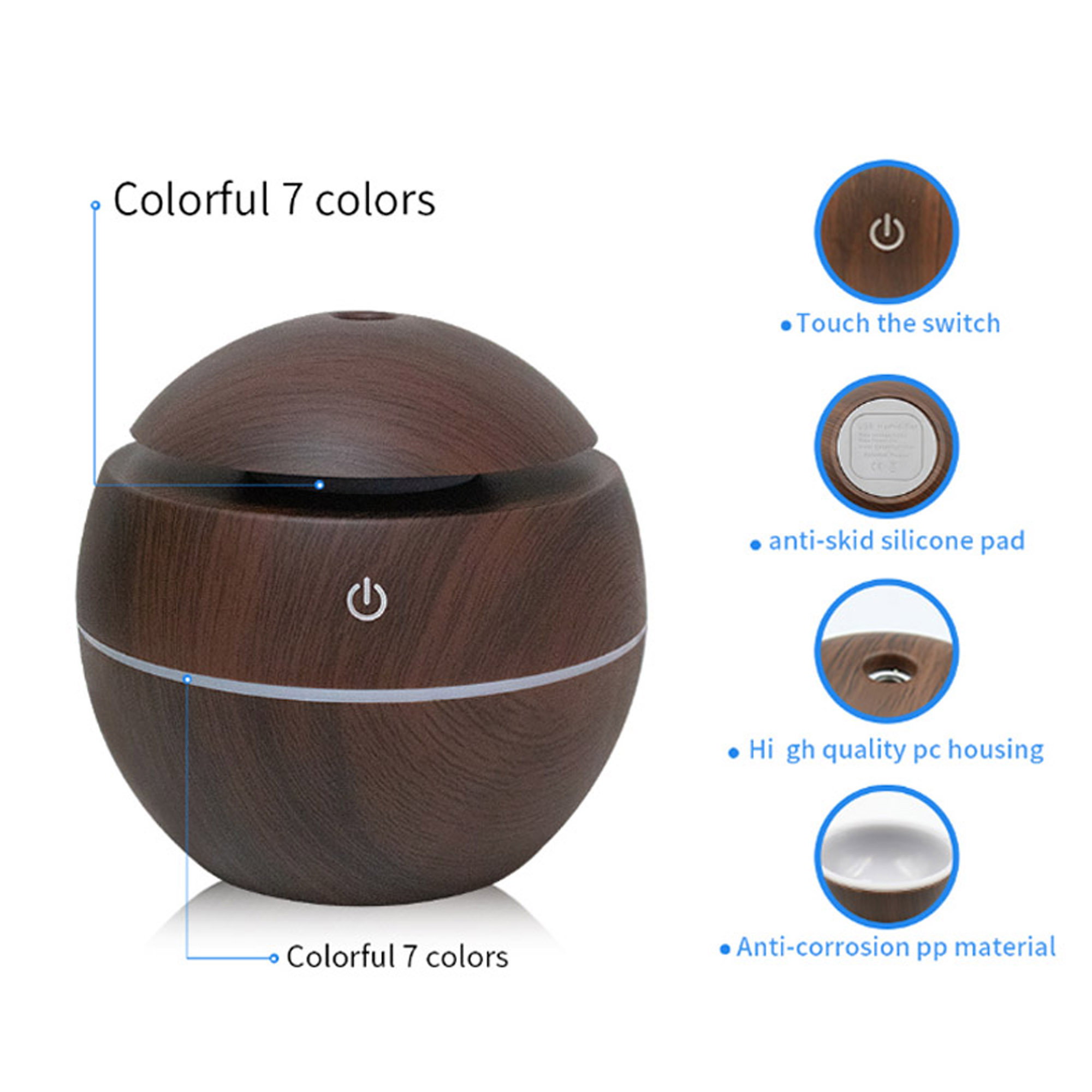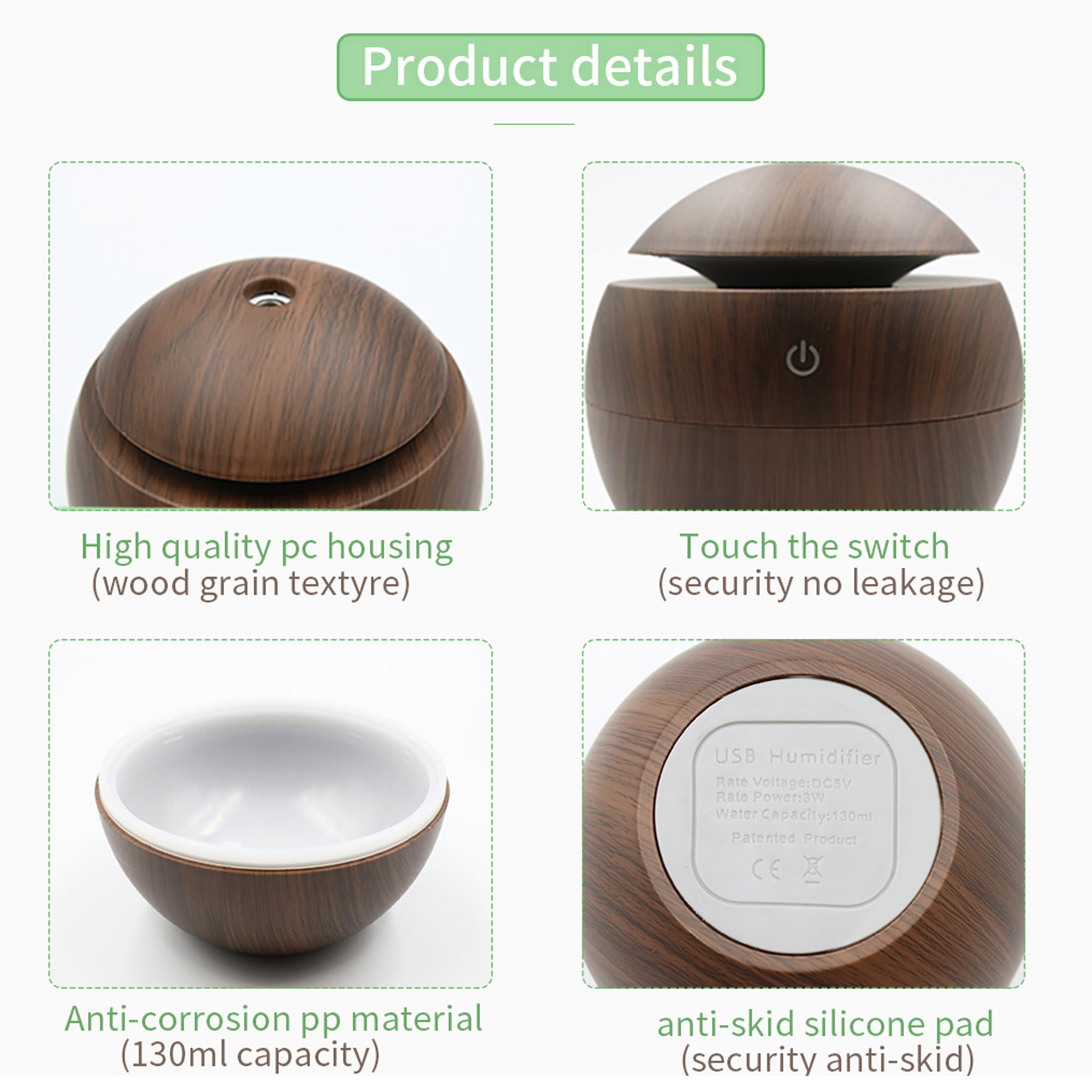 LED Colorful USB Intelligent Induction Wood Grain Humidifier Ultrasonic Air Humidifier Aroma Essential Oil Diffuser for Office Home