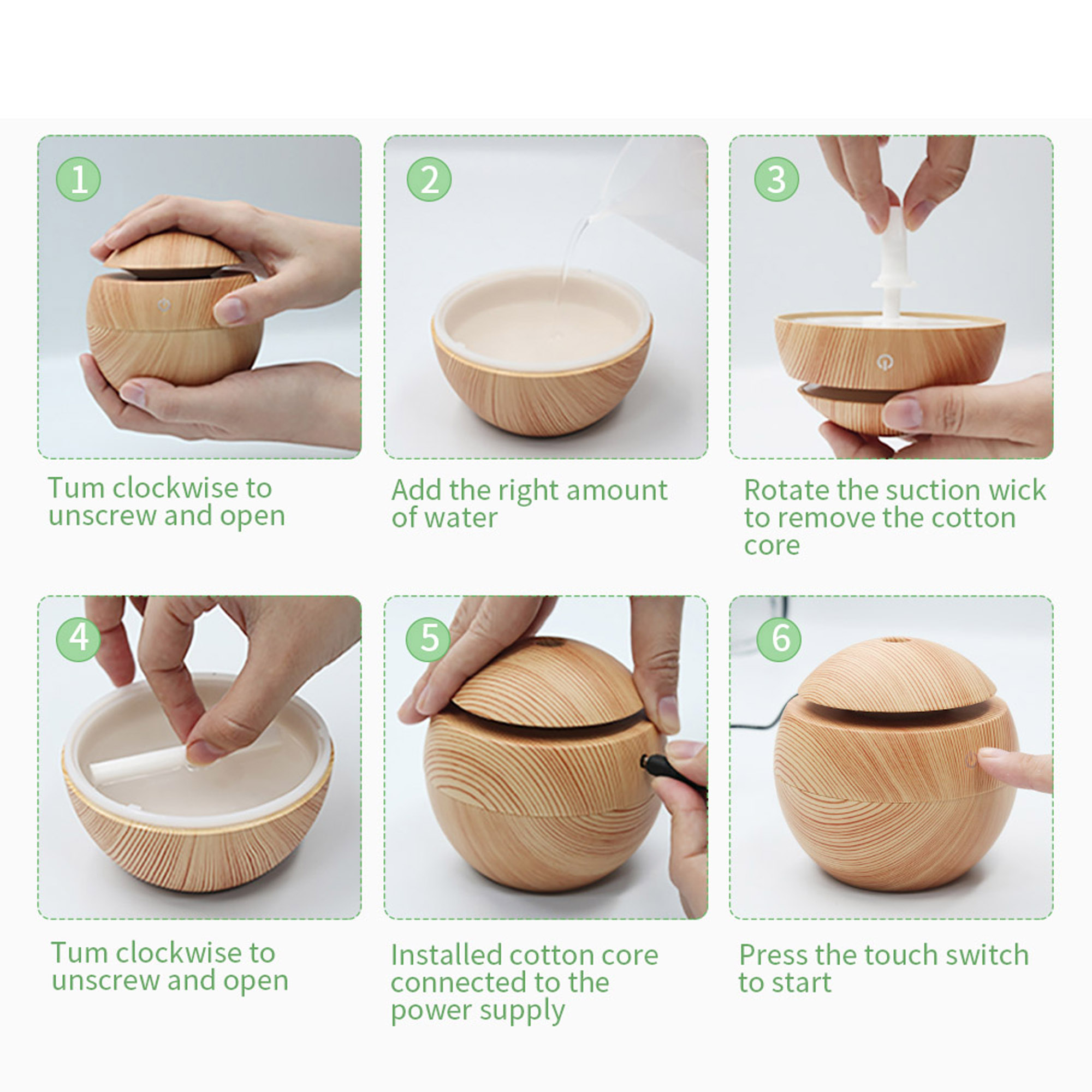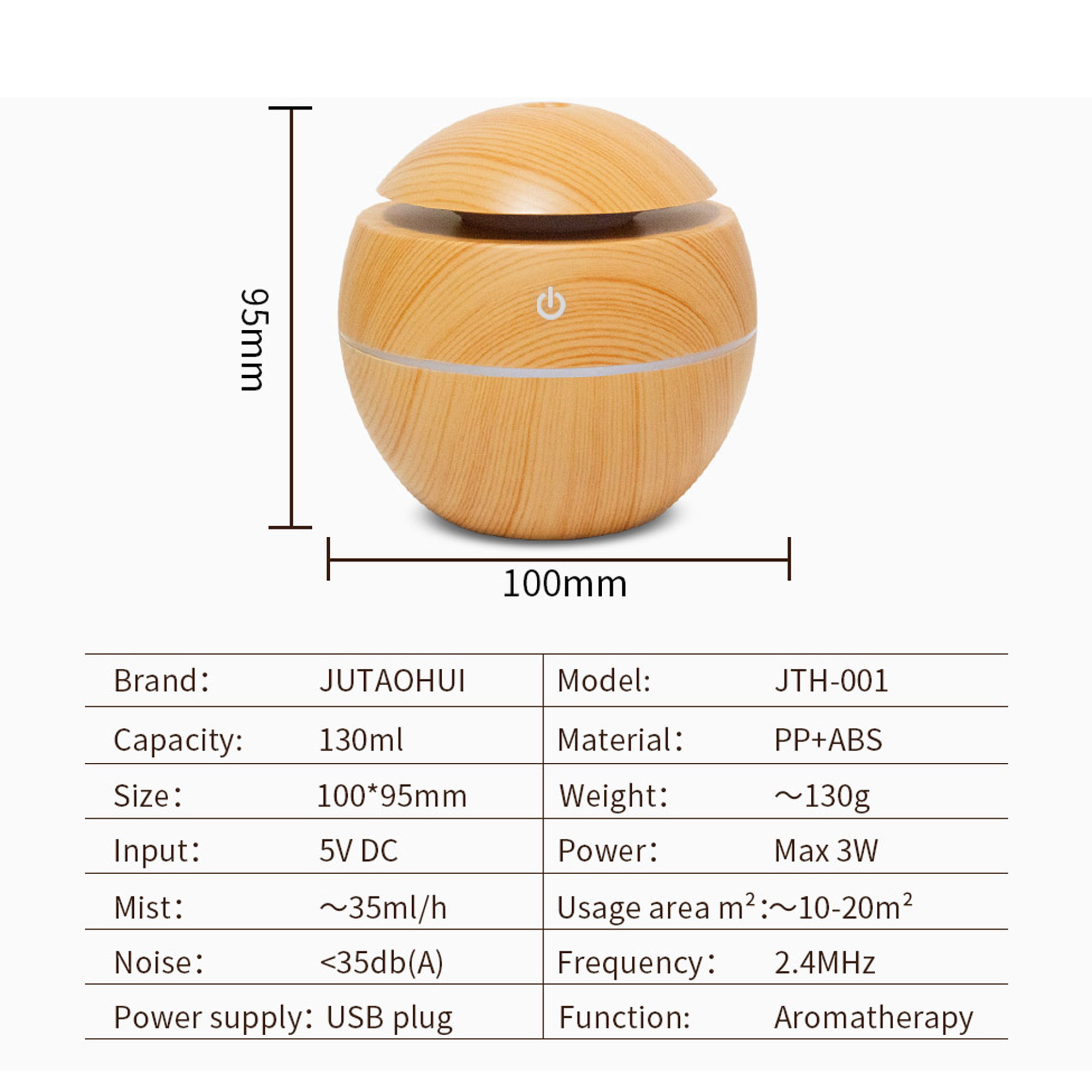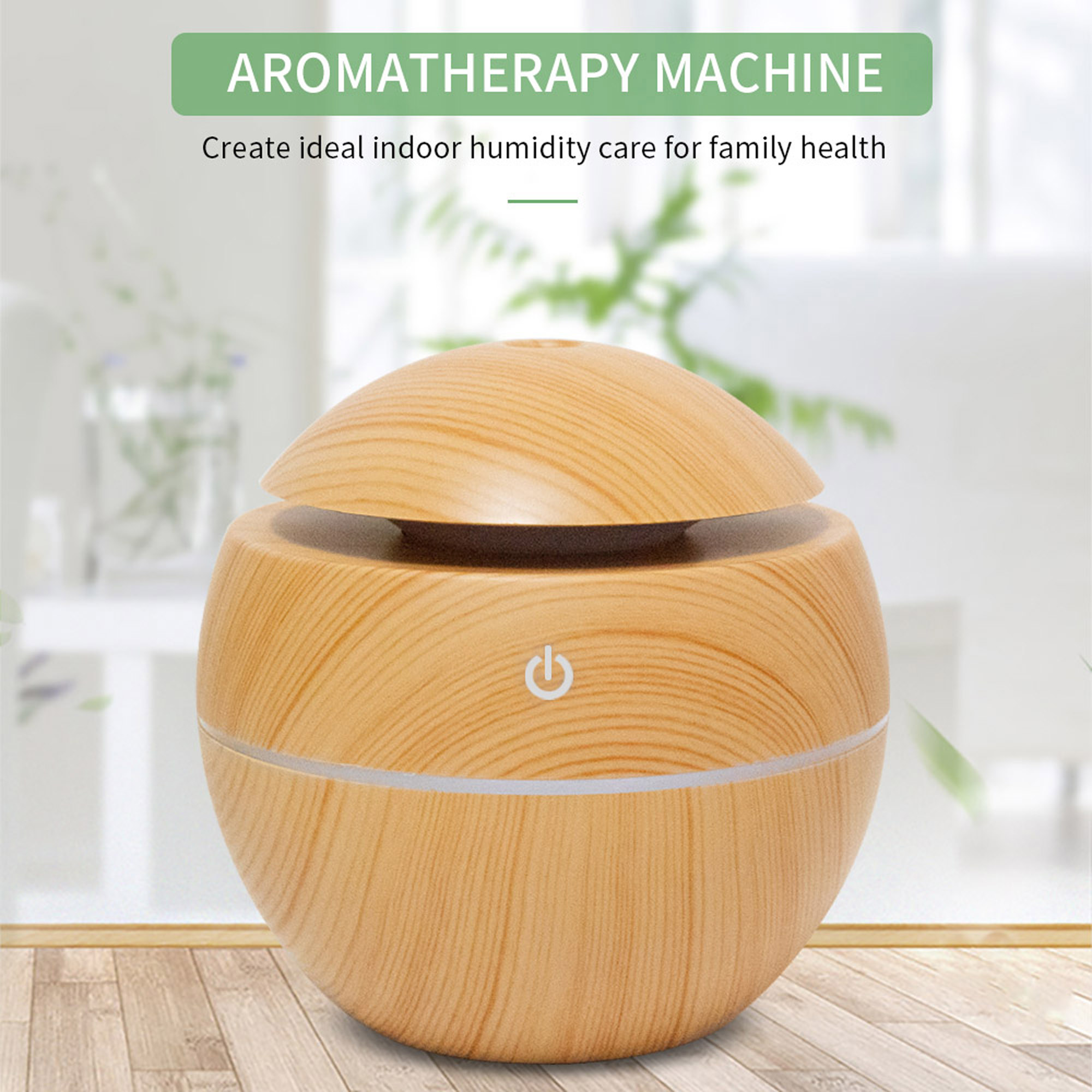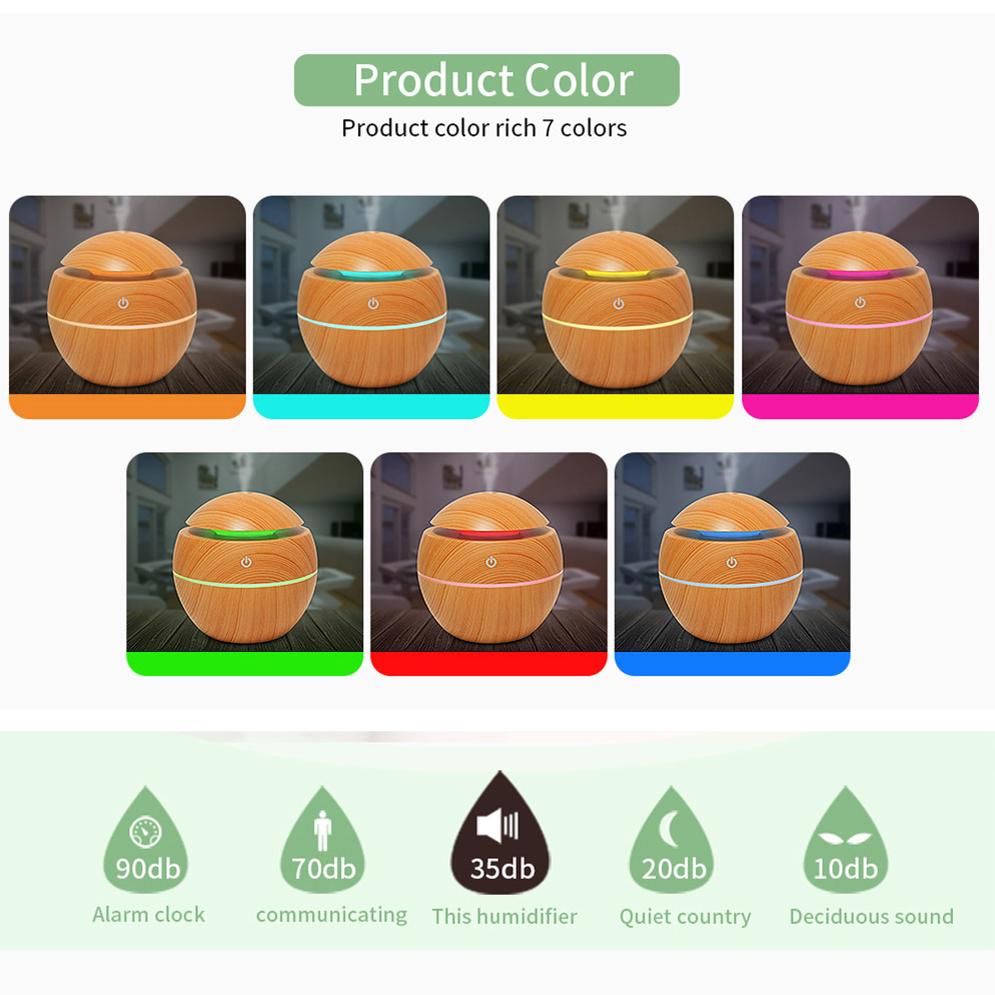 LED Colorful USB Intelligent Induction Wood Grain Humidifier Ultrasonic Air Humidifier Aroma Essential Oil Diffuser for Office Home