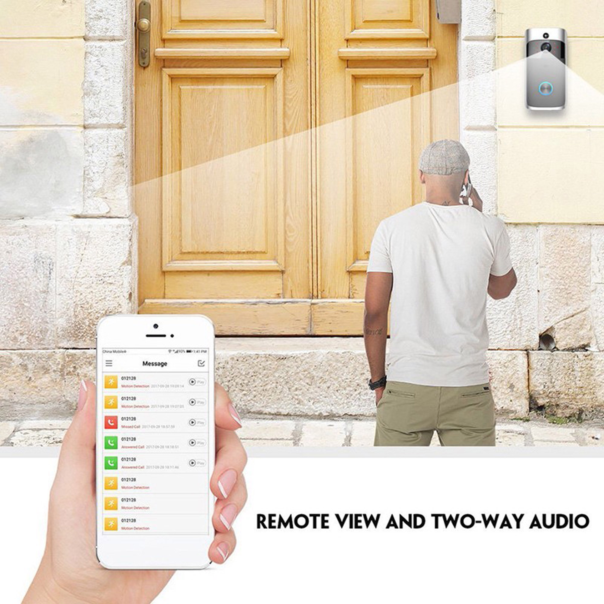 This wifi doorbell can connect home WiFi and achieve a two-way intercom between the doorbell and cell phone. When a visitor presses the doorbell sound is activated and the camera will start sending real-time images and call to the cell phone. The user will receive the call to check who the visitor is.