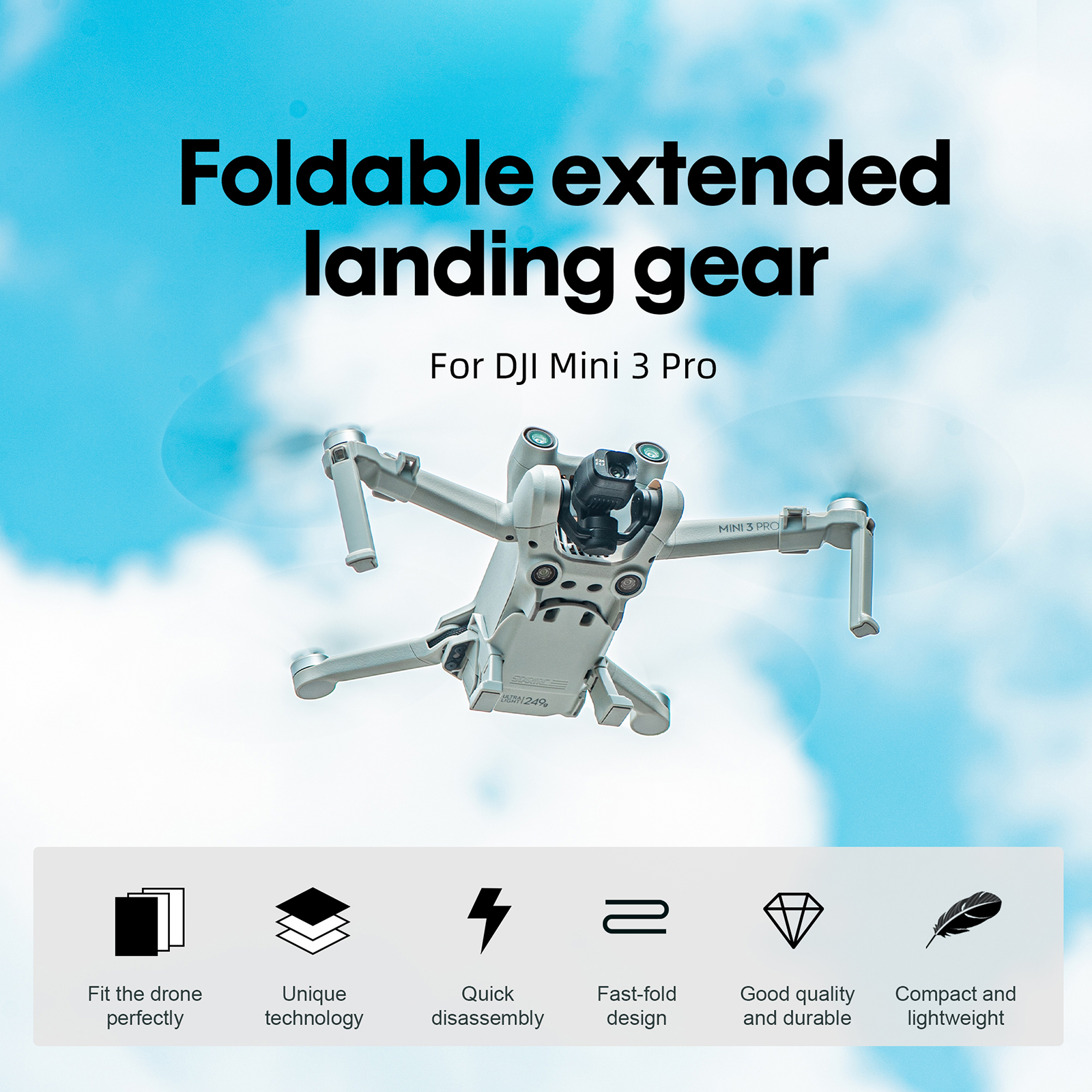 Foldable Extended Landing Gear Anti-drop Cushion Bracket Part for DJI Mini3 Pro