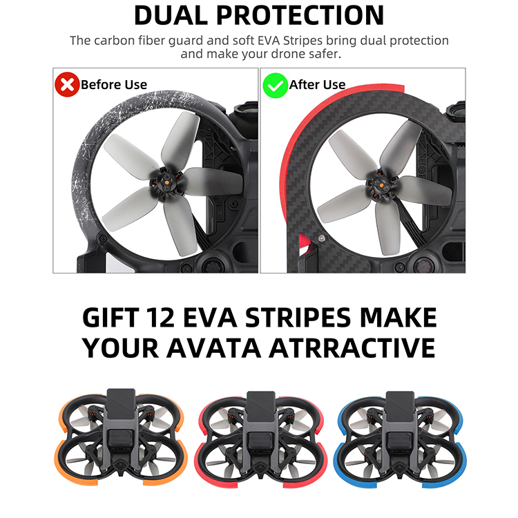l High-strength carbon fiber guard, the hard and lightweight carbon fiber guard provides all-round protection for your AVATA drone