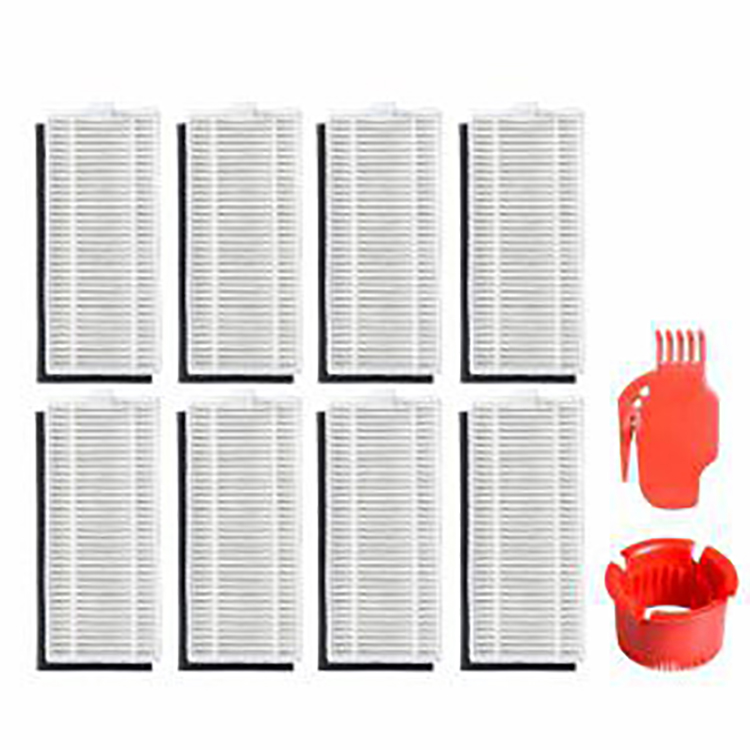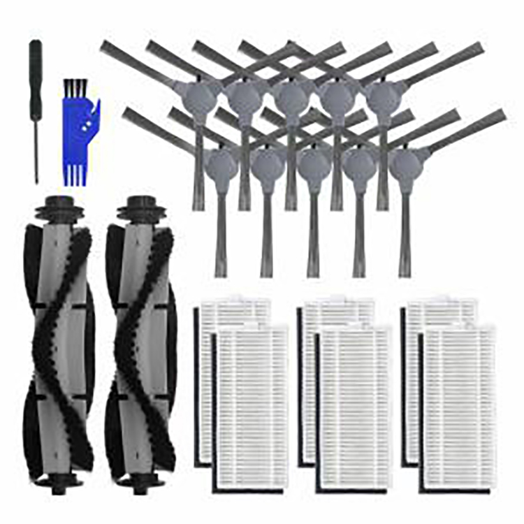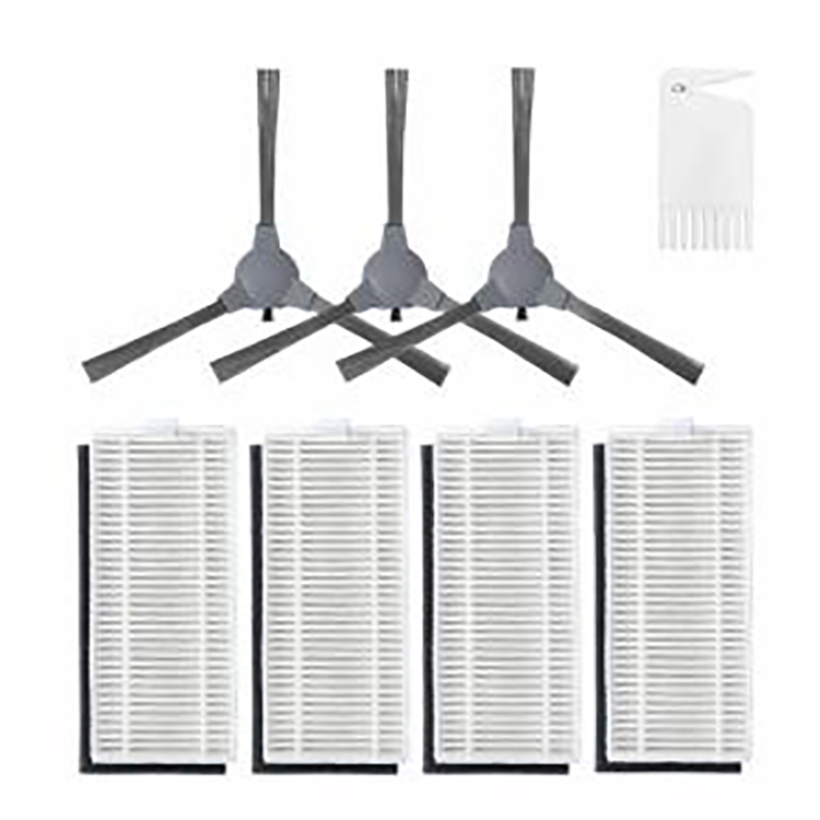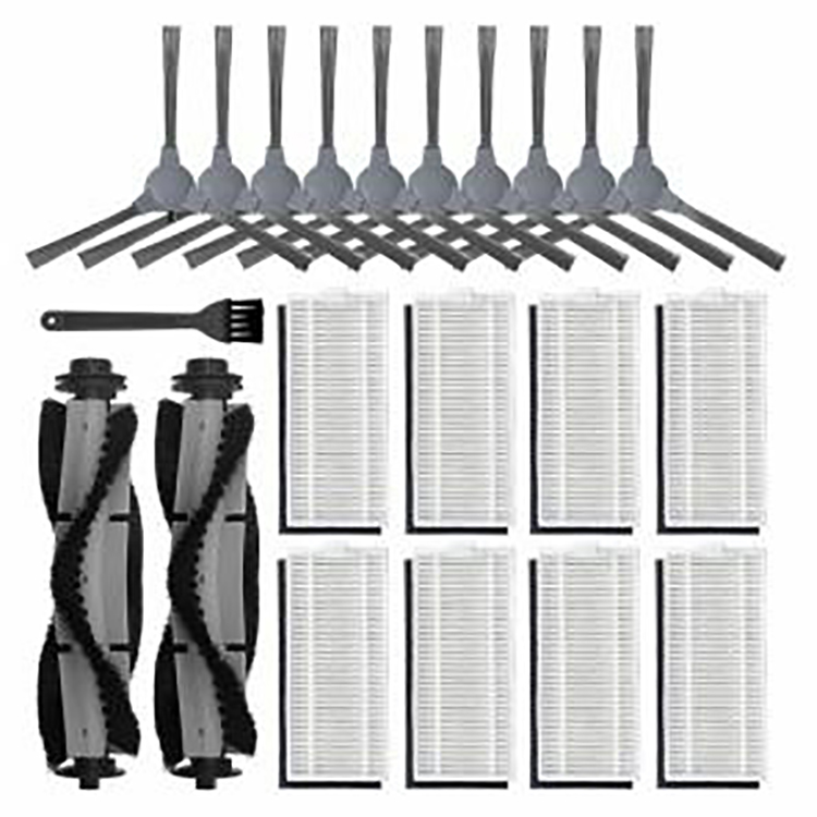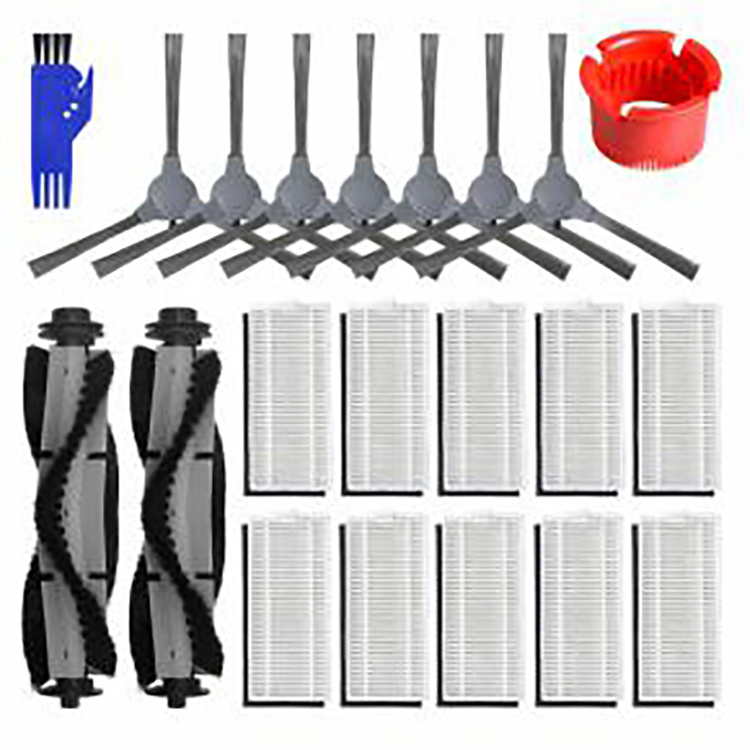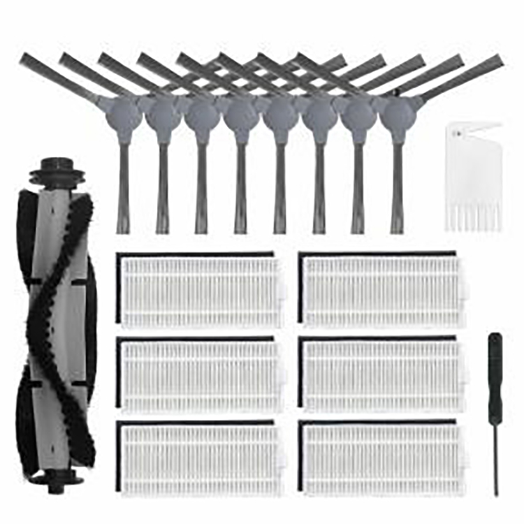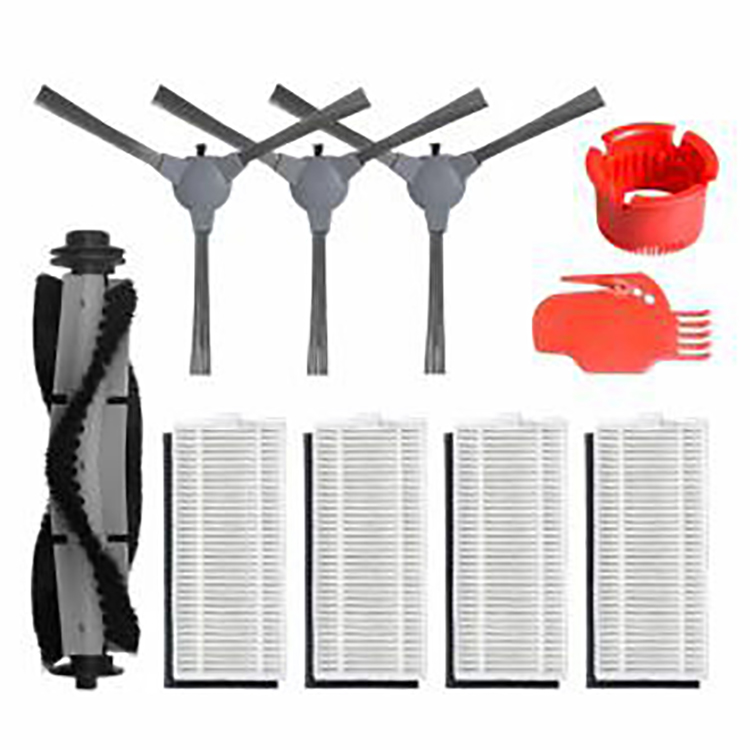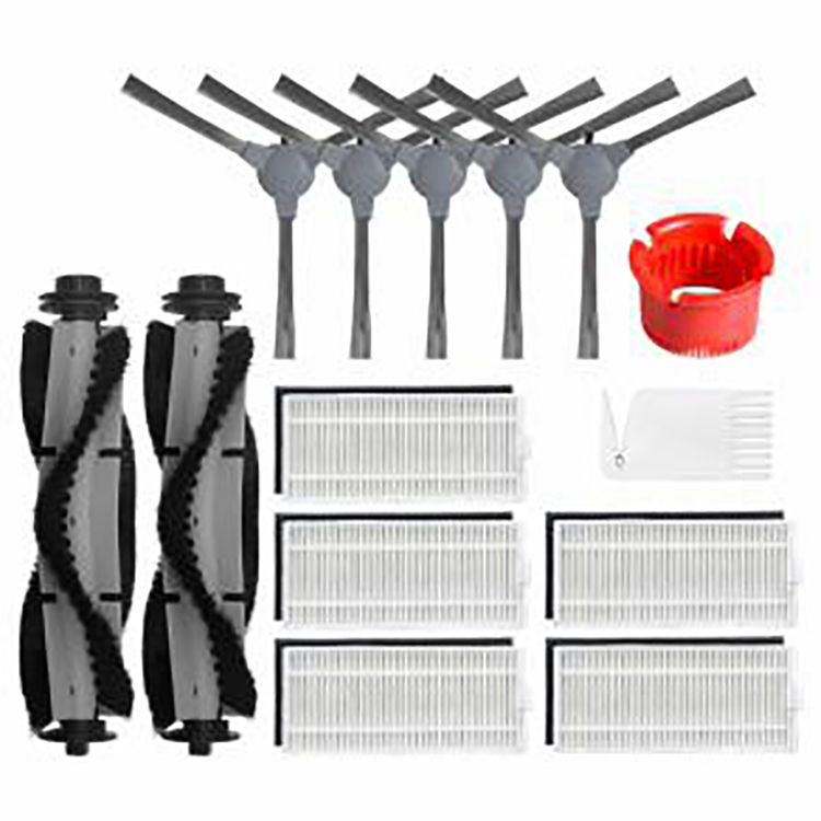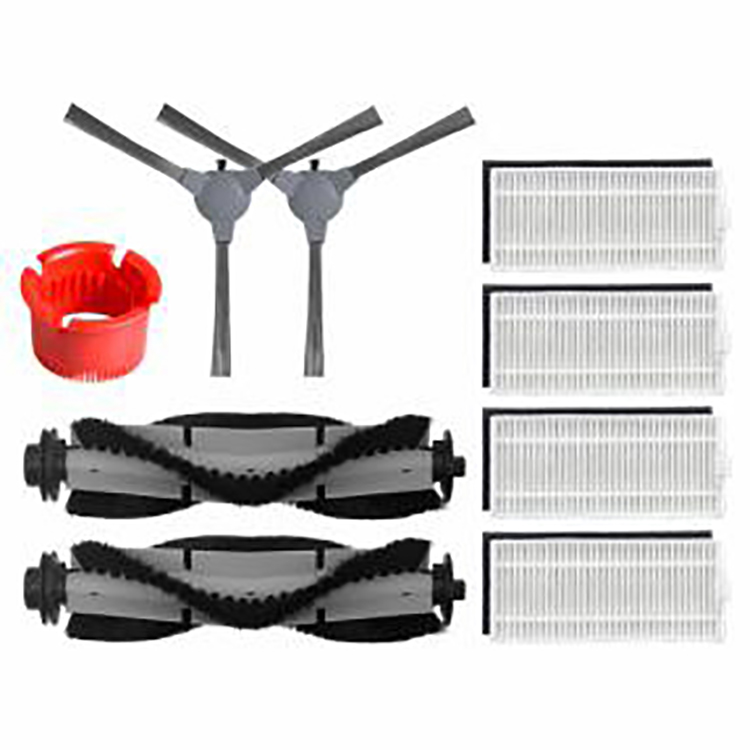 2 roller brushes + 10 side brushes + 8 filters + 1 black comb