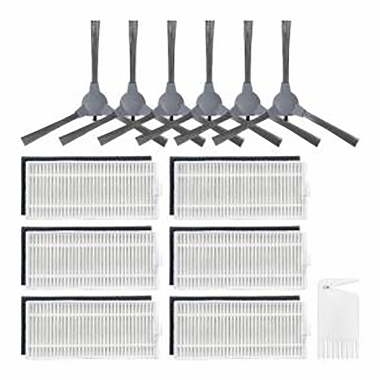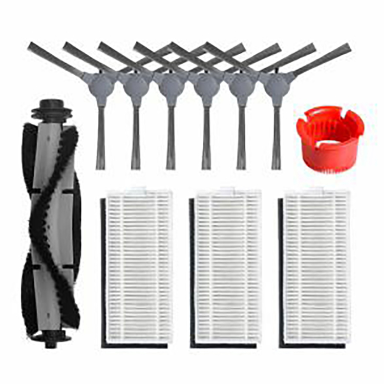 6 filters + 3 side brushes + 1 pair of roller brushes + 1 red brush + 1 yellow brush