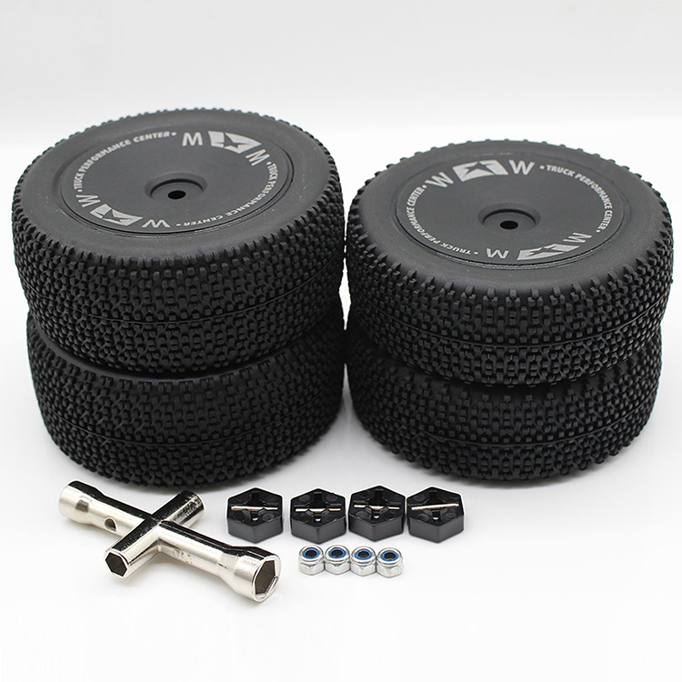 •      1x 2827 Front Tire Set + 1x 2828 Rear Tire Set + 4x 1266 Hex Wheel Seats + 4x Bare Shafts + 4x M3 Lock Nuts + 1x Sleeve
