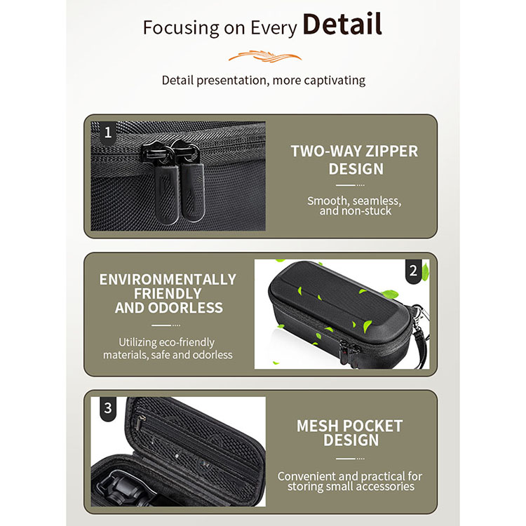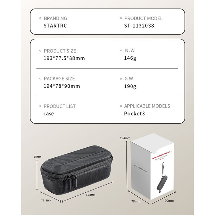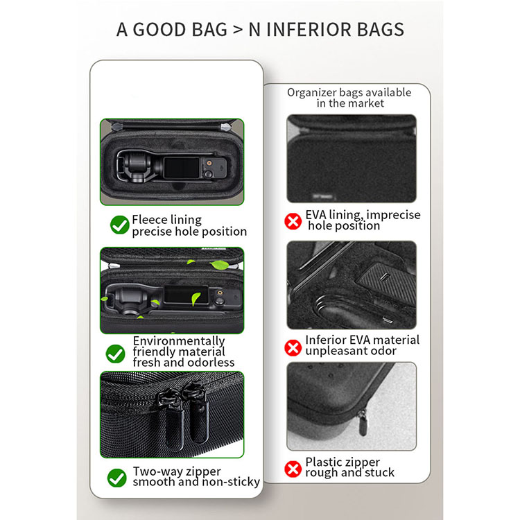 Specially designed for DJI Pocket 3 camera, precise molding (compatible with Pocket 2), can perfectly match to store Pocket 3 camera (with protective case), mesh pocket design can store data cable, windproof fur cover, SD card and other small accessories